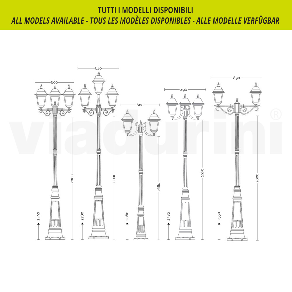 Candeeiro de jardim fabricado com estrutura em alumínio fundido com acabamento antracite e difusor em vidro jateado , inteiramente Fabricado na Itália.