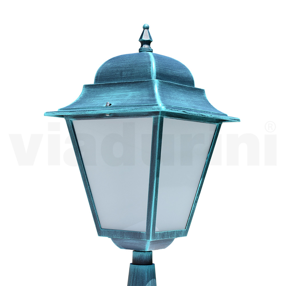 Candeeiro de jardim fabricado com estrutura em alumínio fundido e difusor em vidro jateado , inteiramente Made in Italy.