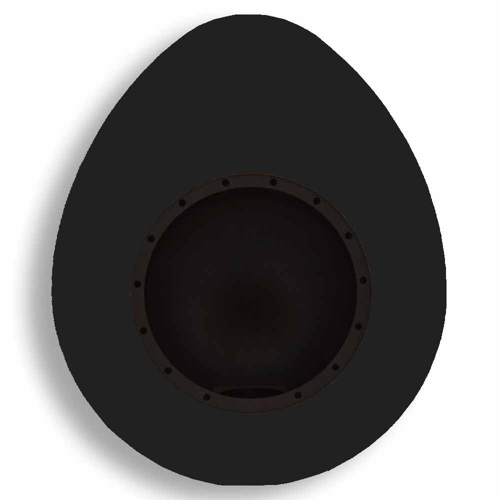 Lareira oval a bioetanol fixada na parede de design moderno em aço, fabricada na Itália.