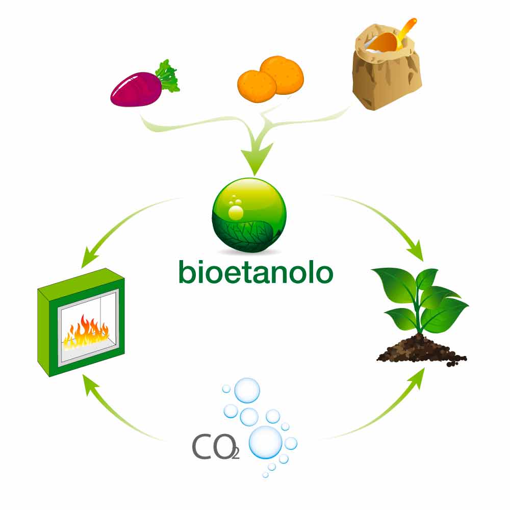 A queima do bioetanol não libera odores e produz apenas uma quantidade de dióxido de carbono (CO2) equivalente à produzida pela presença de um ser humano. É particularmente amigável ao meio ambiente porque a quantidade de CO2 liberada durante a combustão é a mesma absorvida alguns anos antes pela fotossíntese. Assim, a queima do bioetanol não altera o equilíbrio natural do ecossistema.