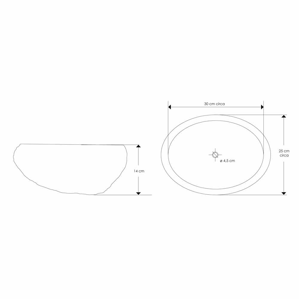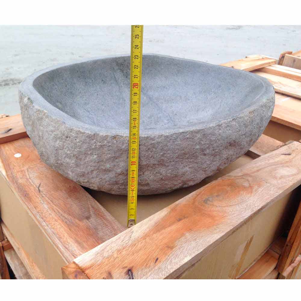 Pias de pedra do rio feitas à mão. As cores vão do cinza com tons de avelã ao antracite com reflexos âmbar. Polido internamente, é deliberadamente deixado a "natureza" externamente. Cada peça da coleção é única, a fotografada é um exemplo que não pode ser repetido em série.