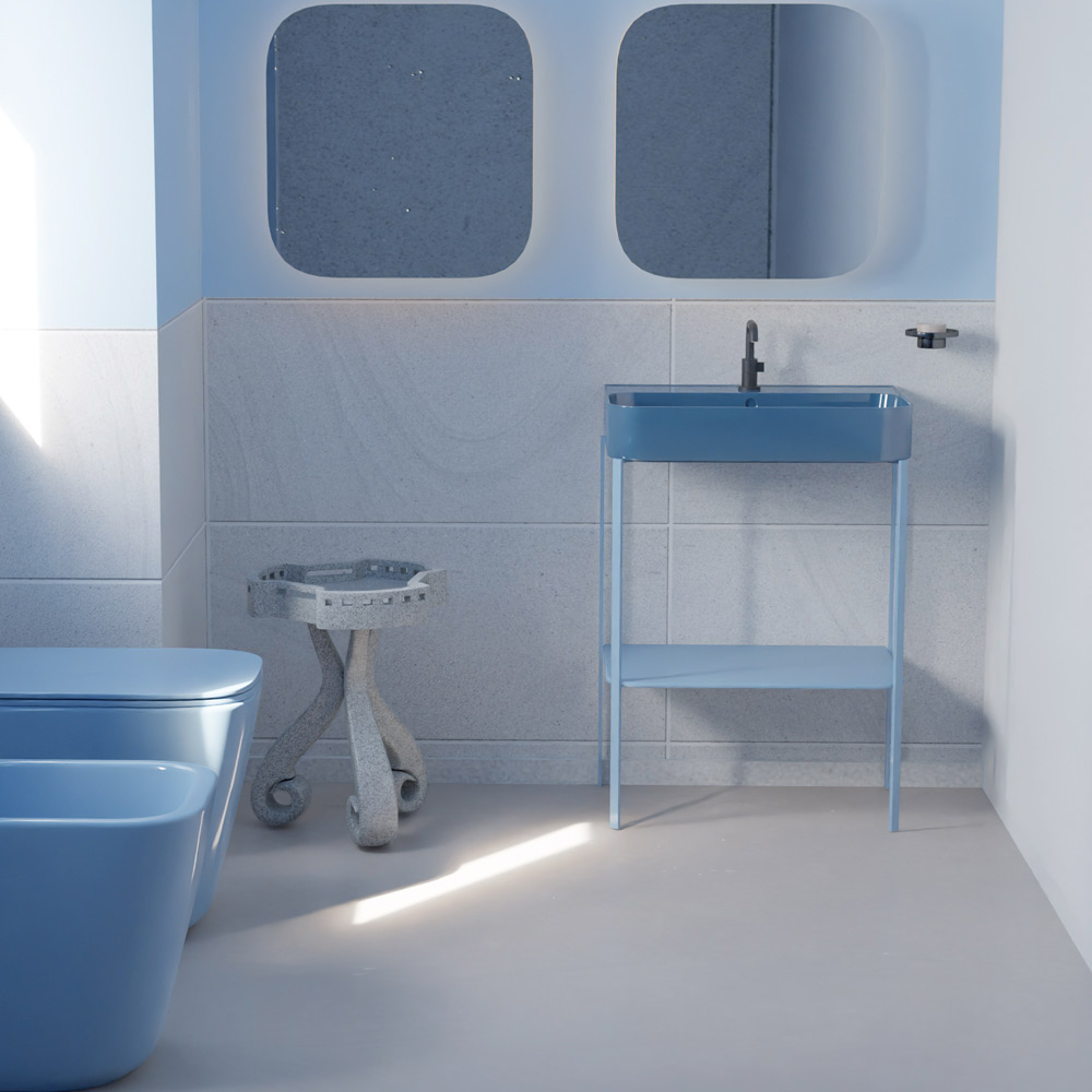 A estrutura, com prateleira inferior , não só suporta a pia com elegância, mas também proporciona uma útil área de armazenamento, otimizando o espaço sem sacrificar o estilo.