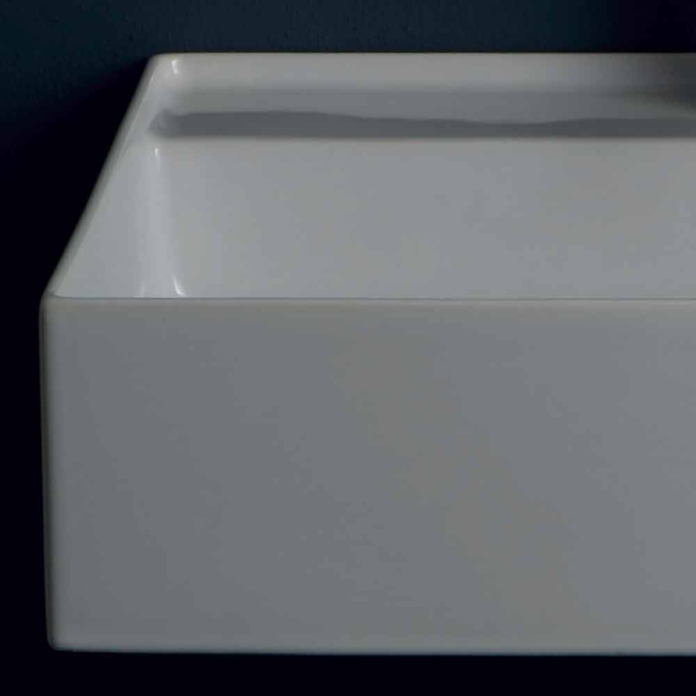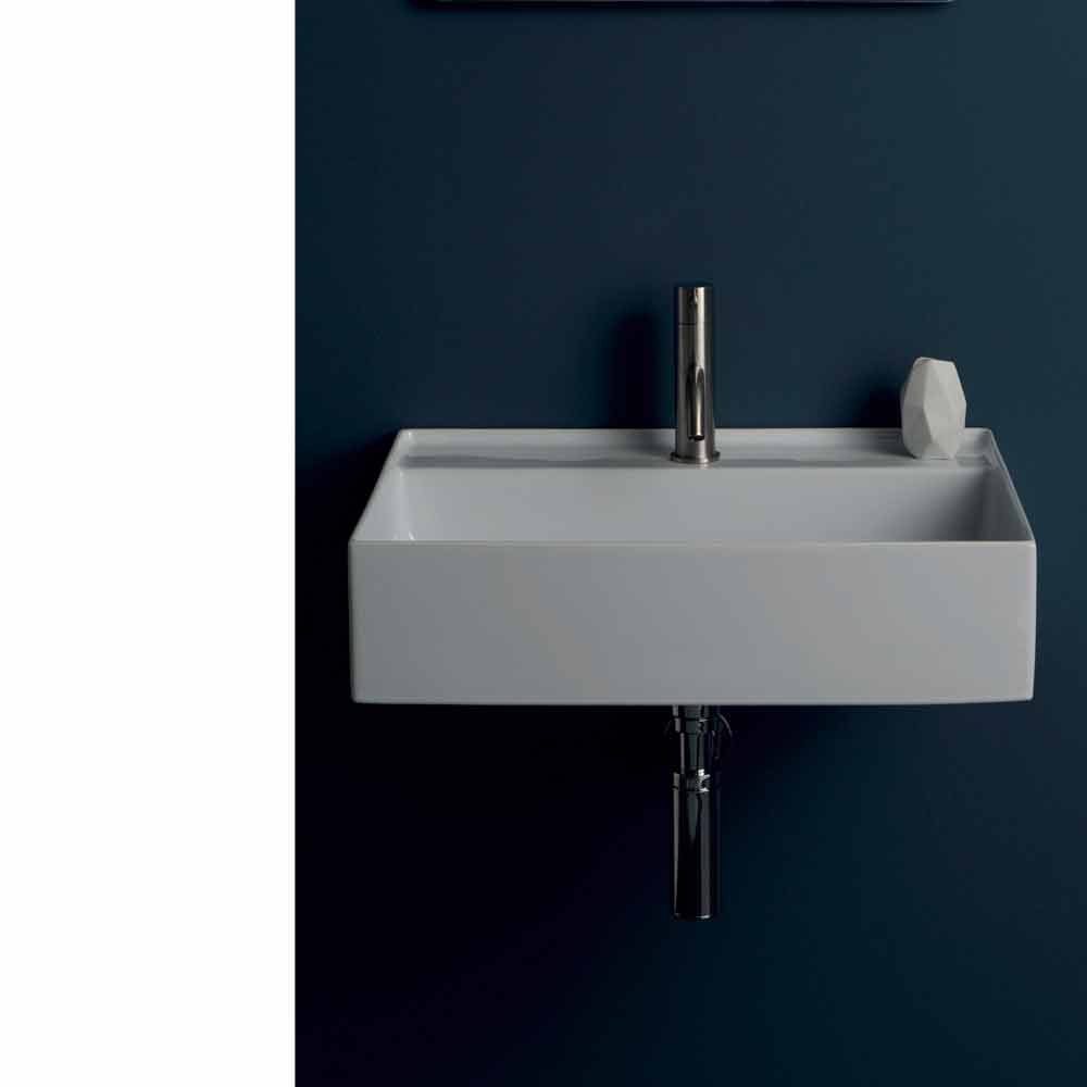 Lavatório suspenso em cerâmica de design moderno Sun 60x45 cm, fabricado na Itália