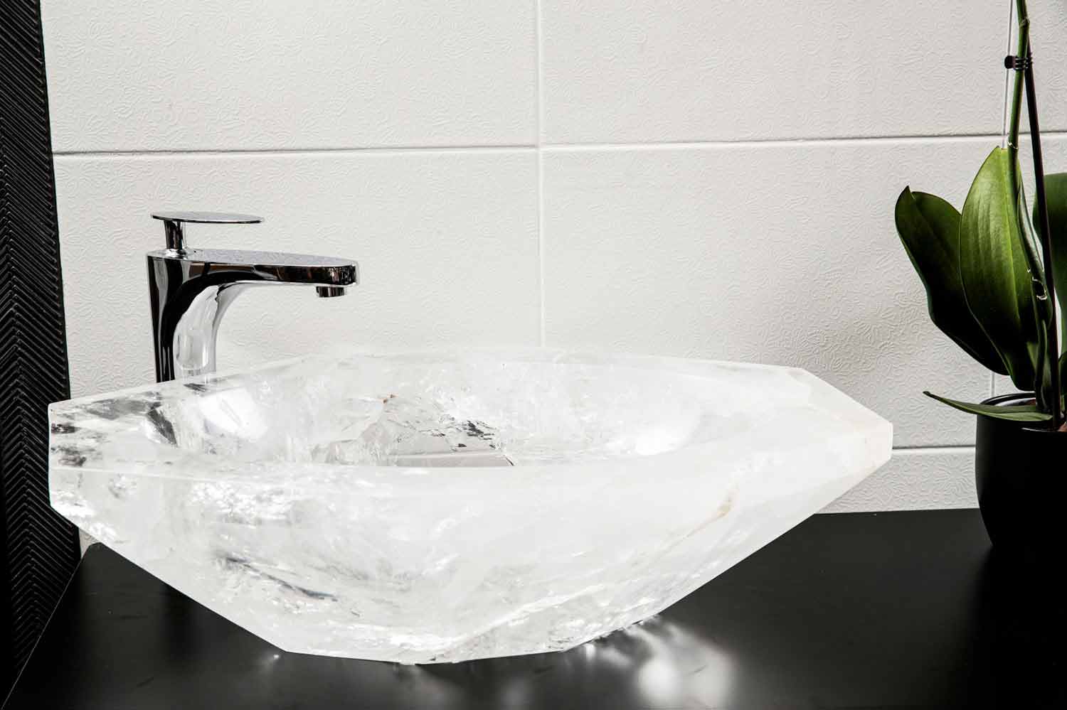 Lavatório de bancada feito à mão em cristal de rocha, para decoração de banheiro com estilo.