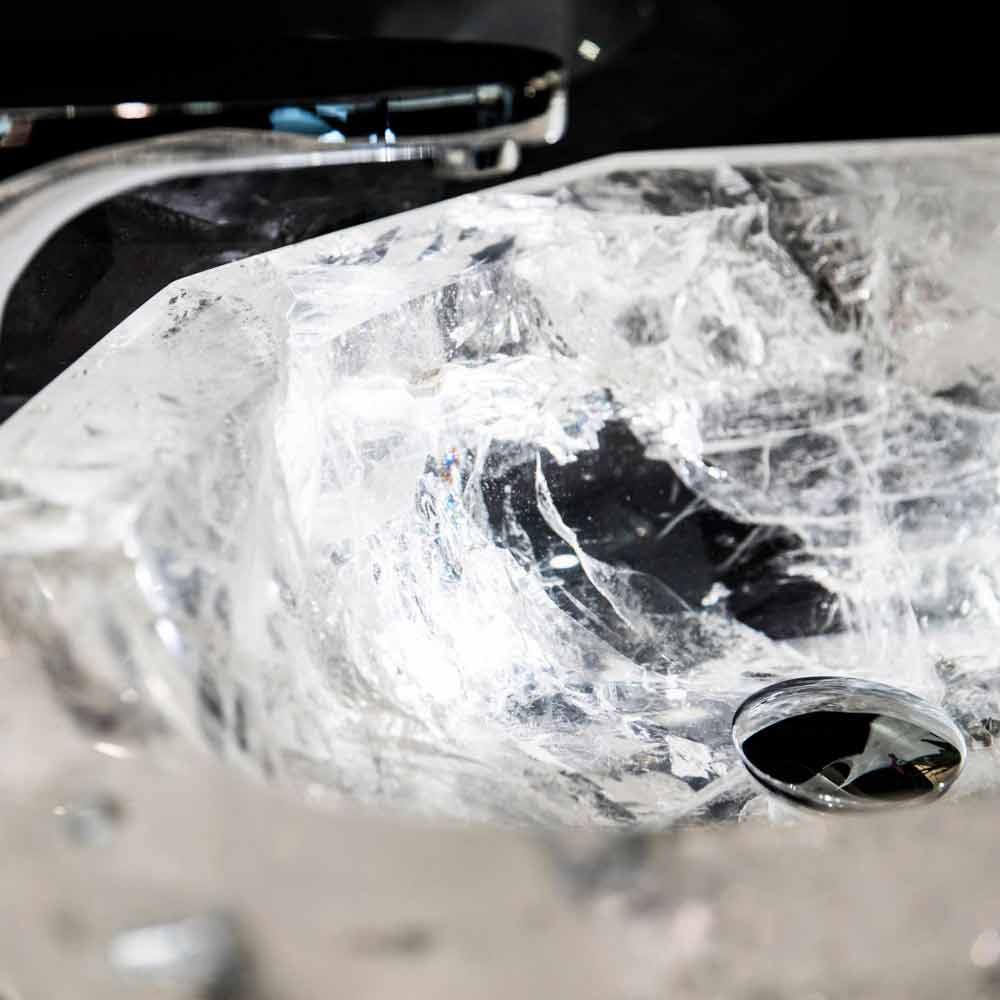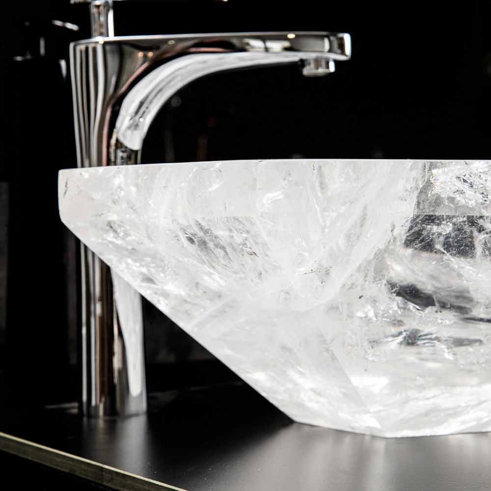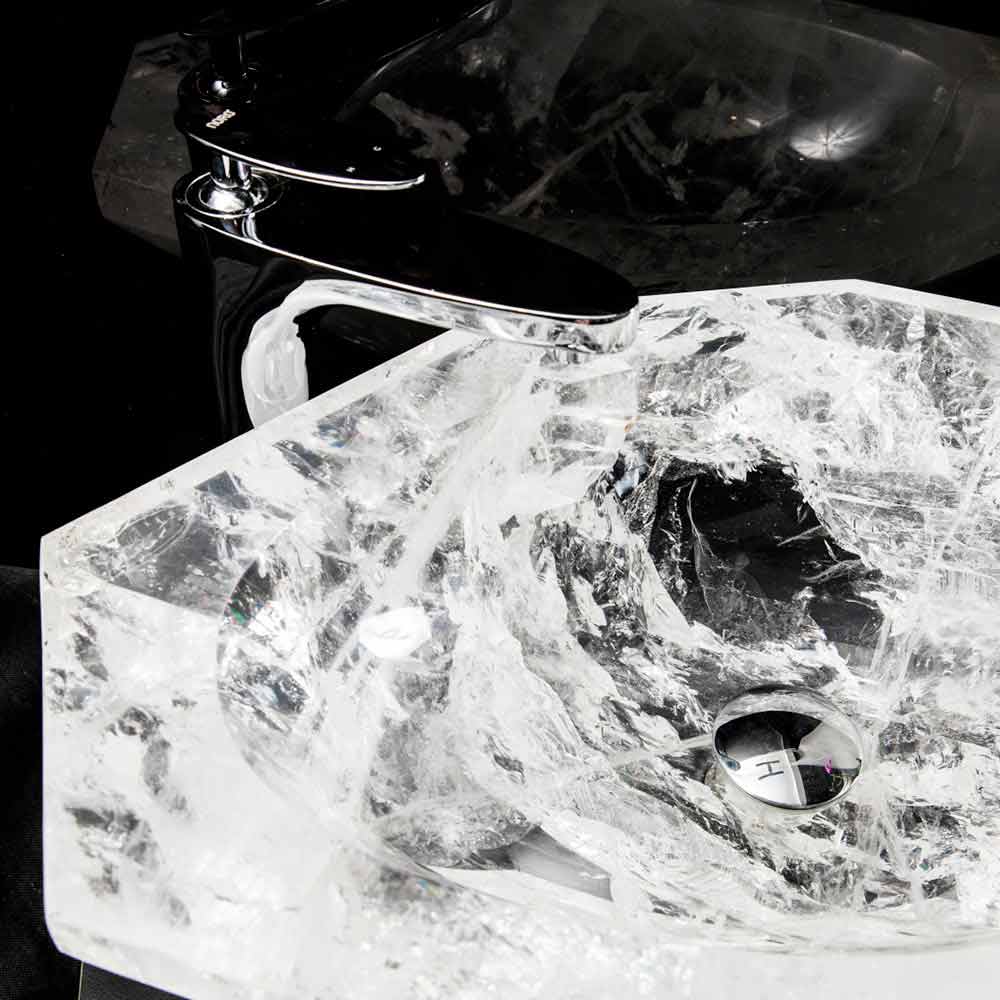 Falvaterra é um fabuloso e original lavatório feito à mão numa única peça de cristal de rocha. O acabamento é transparente.