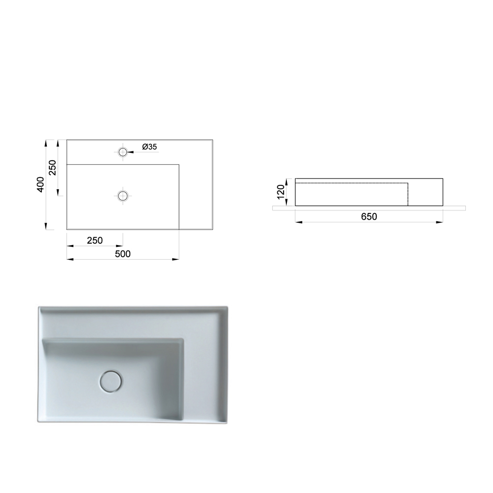 Lavatório em cerâmica preta mate de estilo moderno, disponível sem furo para torneira.