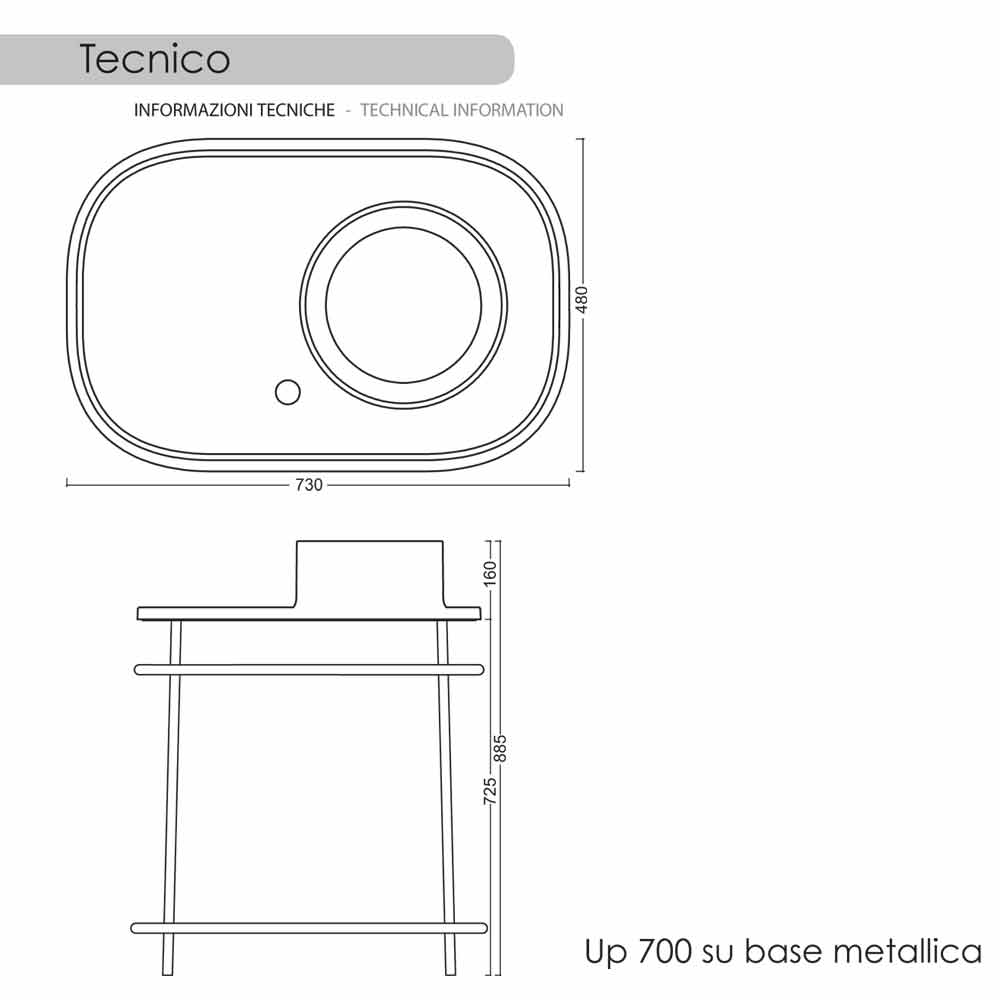 Lavatório de cerâmica com aspecto vintage e desenho prático, com tampa do ralo em cerâmica branca, completo com base metálica.