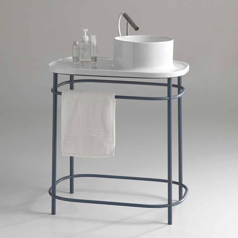 Lavatório de bancada em cerâmica completo com base metálica Marta