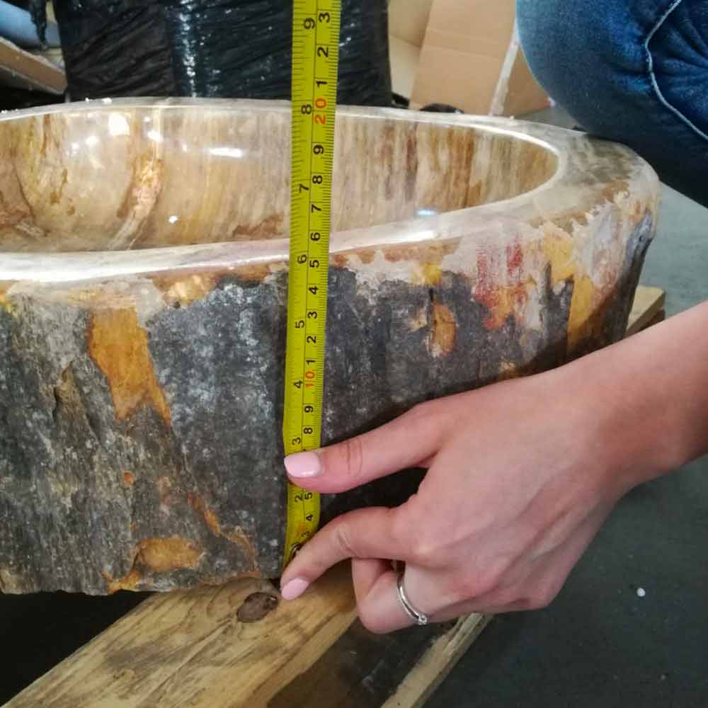 Por causa das características técnicas e estéticas da matéria-prima natural, cada bacia é única em forma e cor.