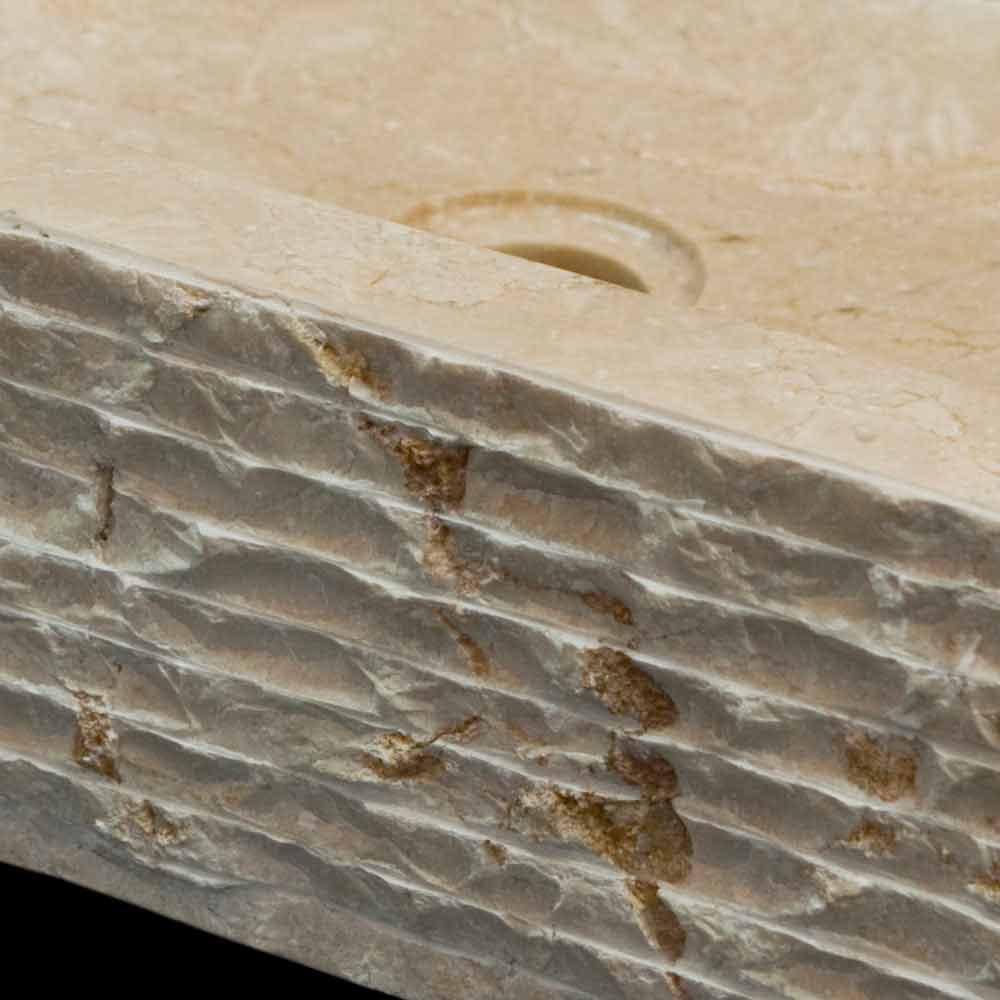 Lavatório de bancada em pedra natural artesanal, design moderno.