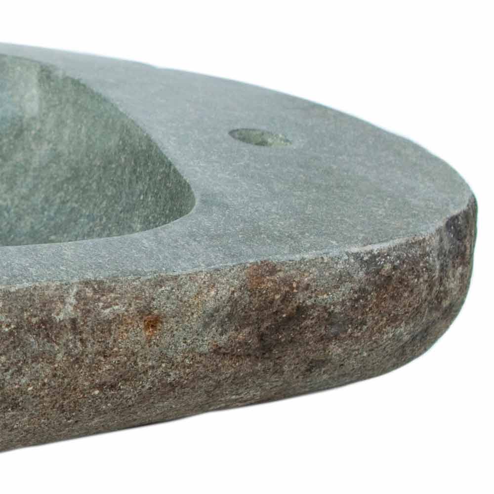 Lavatório feito à mão em pedra natural com furo para torneira. Cor: Pedra do rio