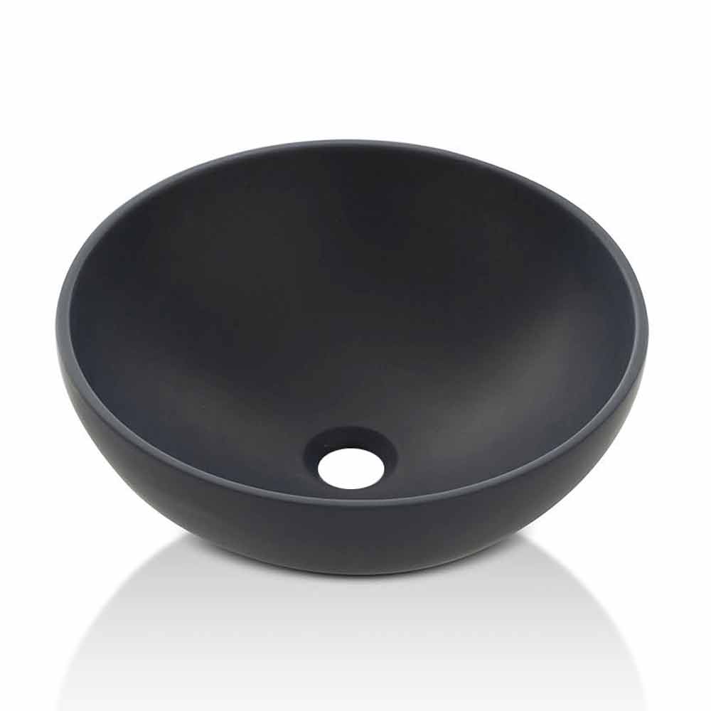 Lavatório circular de bancada em estilo moderno feito artesanalmente na Itália em resina opaca.