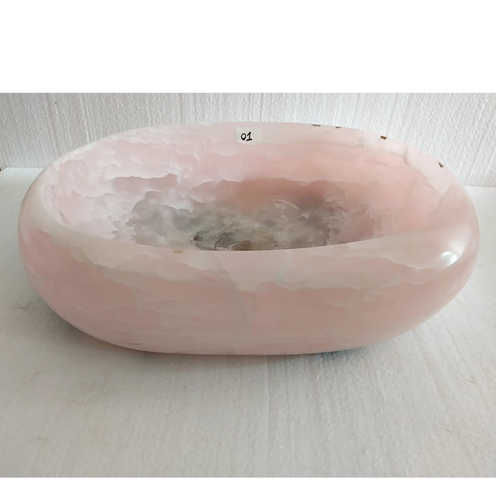 Lavatório de bancada de design em pedra ônix rosa Baffo, peça única