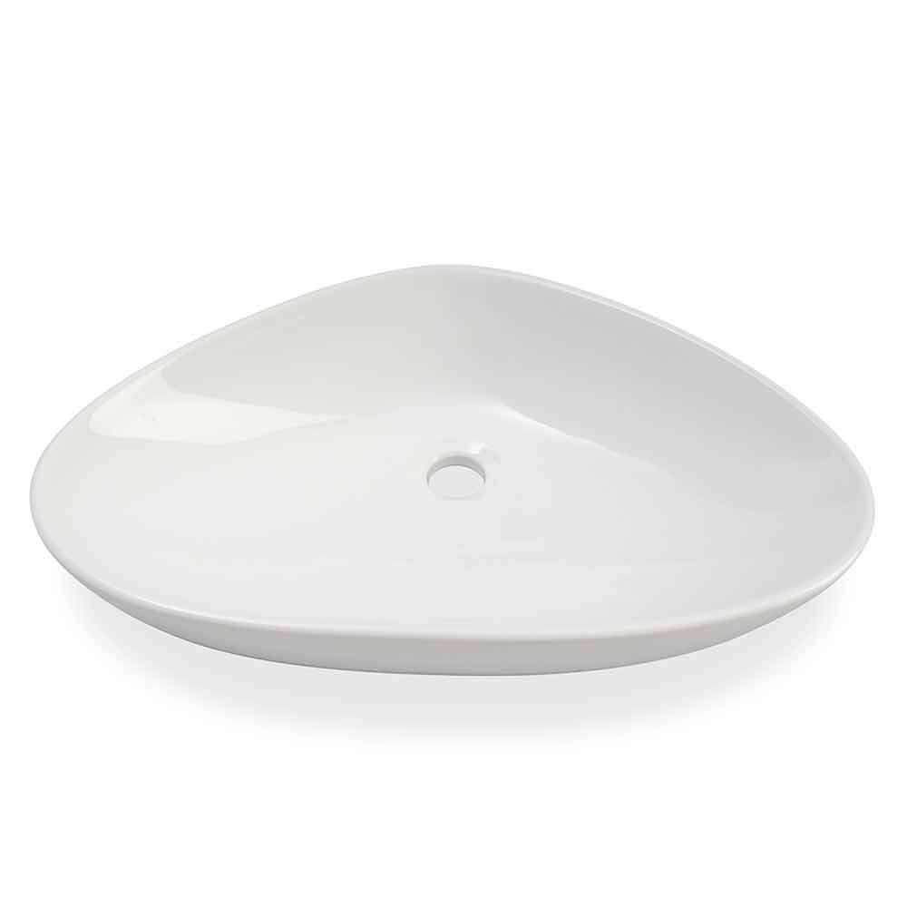 Lavatório de bancada em forma de estilo moderno feito à mão na Itália em cerâmica branca brilhante.
