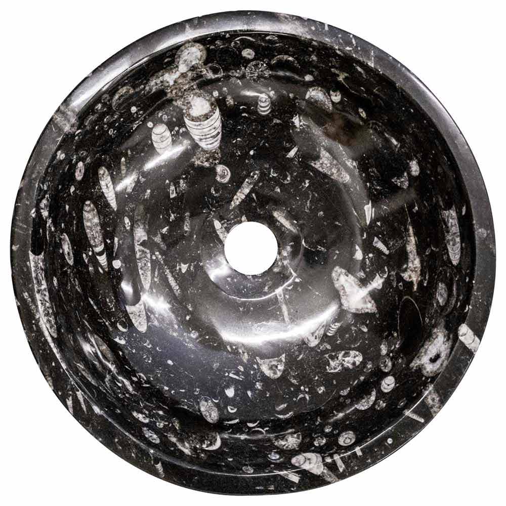 Mesagne é um fantástico lavatório feito à mão em mármore com fósseis de milhões de anos inseridos.