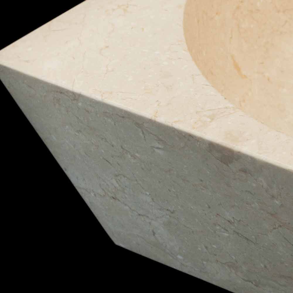 Lavatório de bancada em pedra natural artesanal, peça única. Cor: Branco