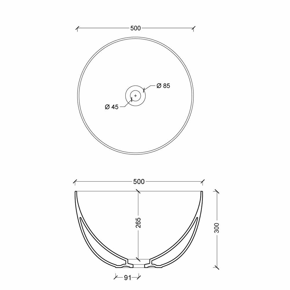 NB: Dreno cerâmico de descarga livre incluído, torneira excluída.