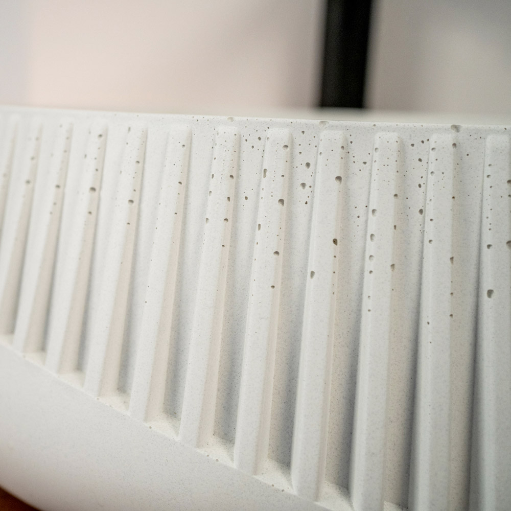 Este lavatório de bancada , perfeito para os amantes do estilo Urban Cottage ou Industrial, é escultura e função num único objeto. Sua essência se expressa através dos microporos externos e do sombreamento, assinaturas autênticas do cimento utilizado. O acabamento externo, com gravuras precisas, acrescenta um toque material. Disponível em dois acabamentos , essa pia é uma afirmação de estilo para os ousados que querem se destacar.