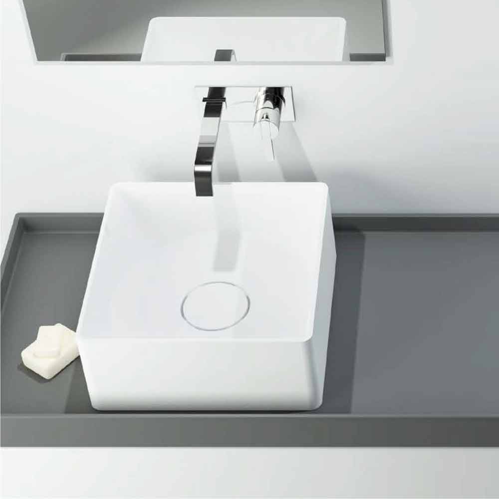 Forino é um lavatório de bancada quadrada com um design moderno e elegante; capaz de integrar e encontrar um equilíbrio em qualquer tipo de banheiro.