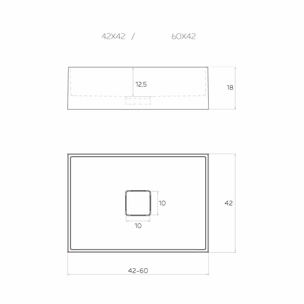 - L 42 x P 42 x H 18 cm;