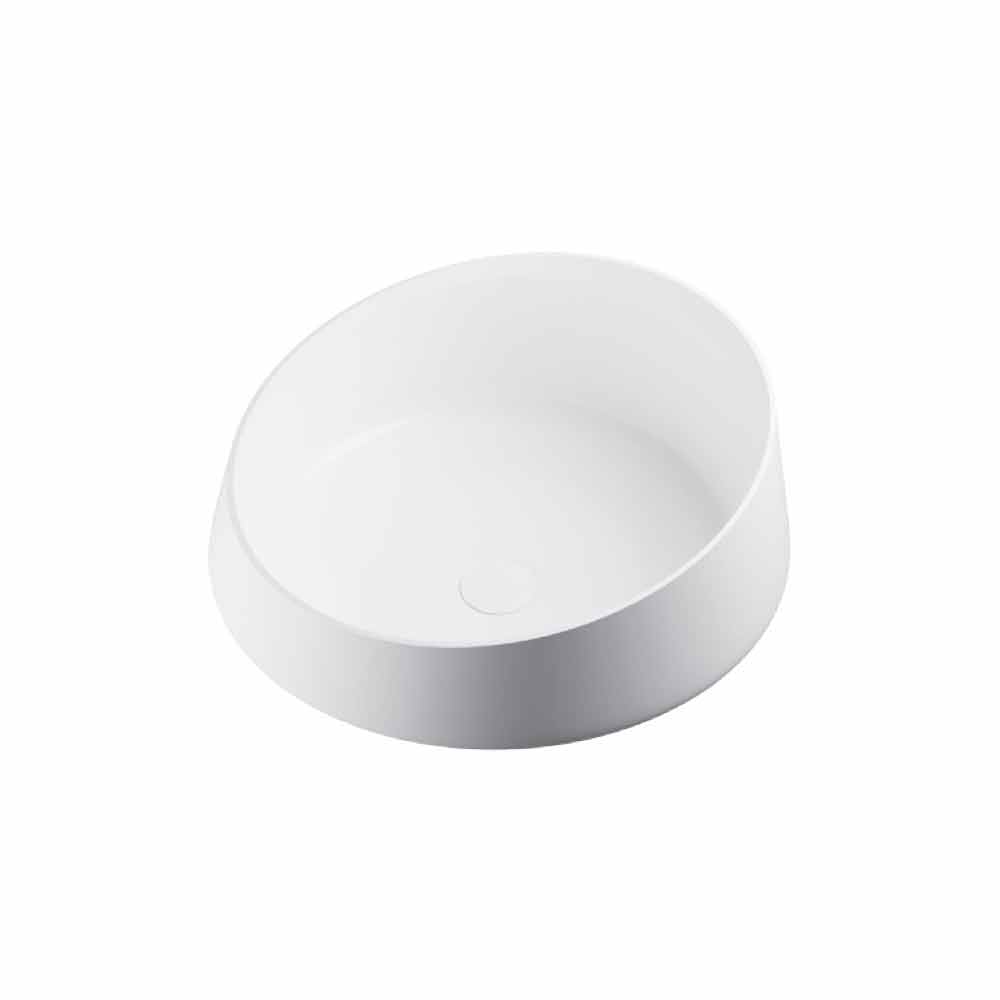 Dongo é um lavatório de bancada free-standing feito de Solid Surface.