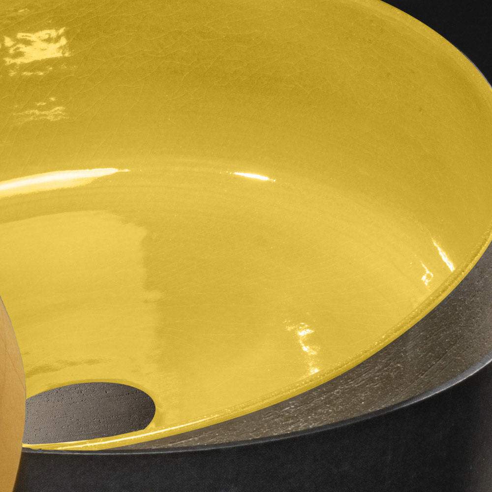 Lavatório de apoio em barro com interior esmaltado amarelo Made in Italy.