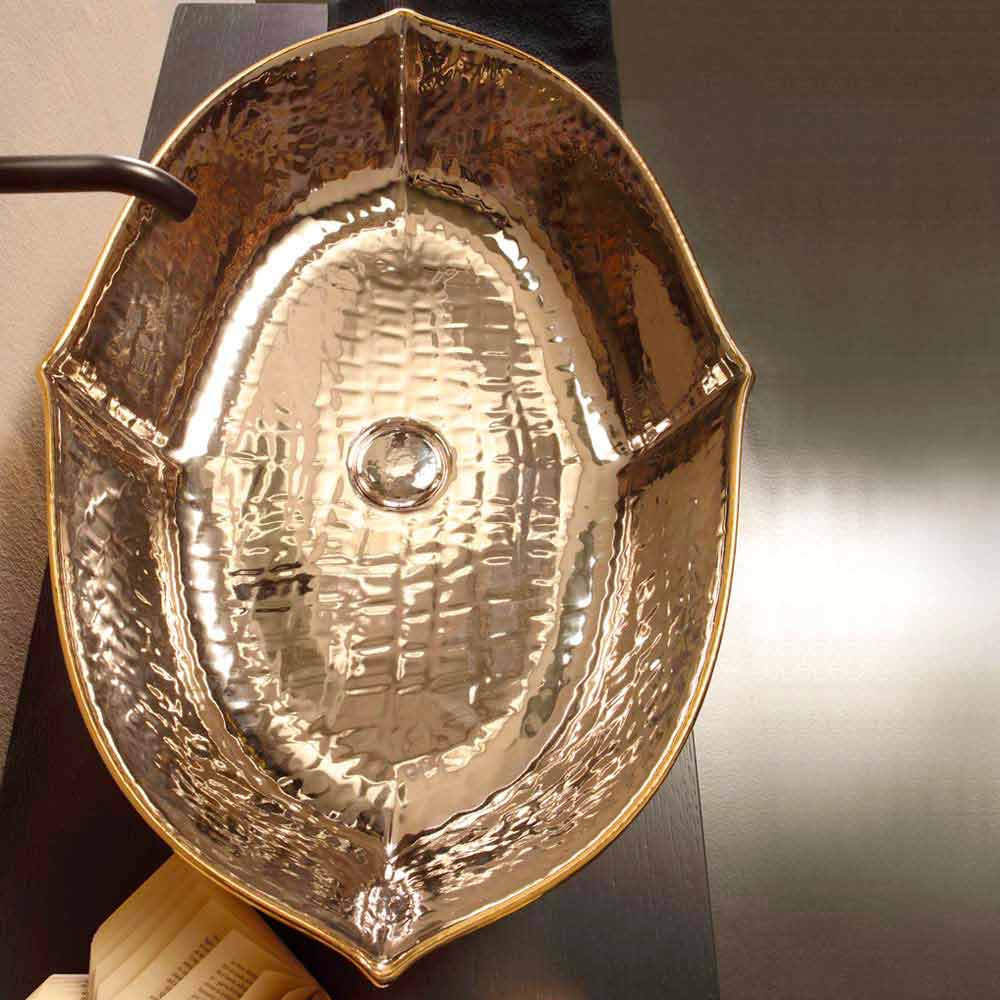 Lavatório de bancada de cerâmica de platina e ouro de Oscar made Itália design