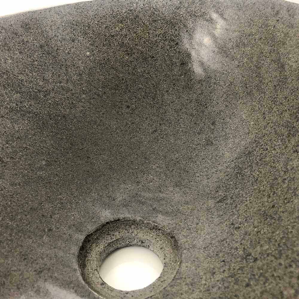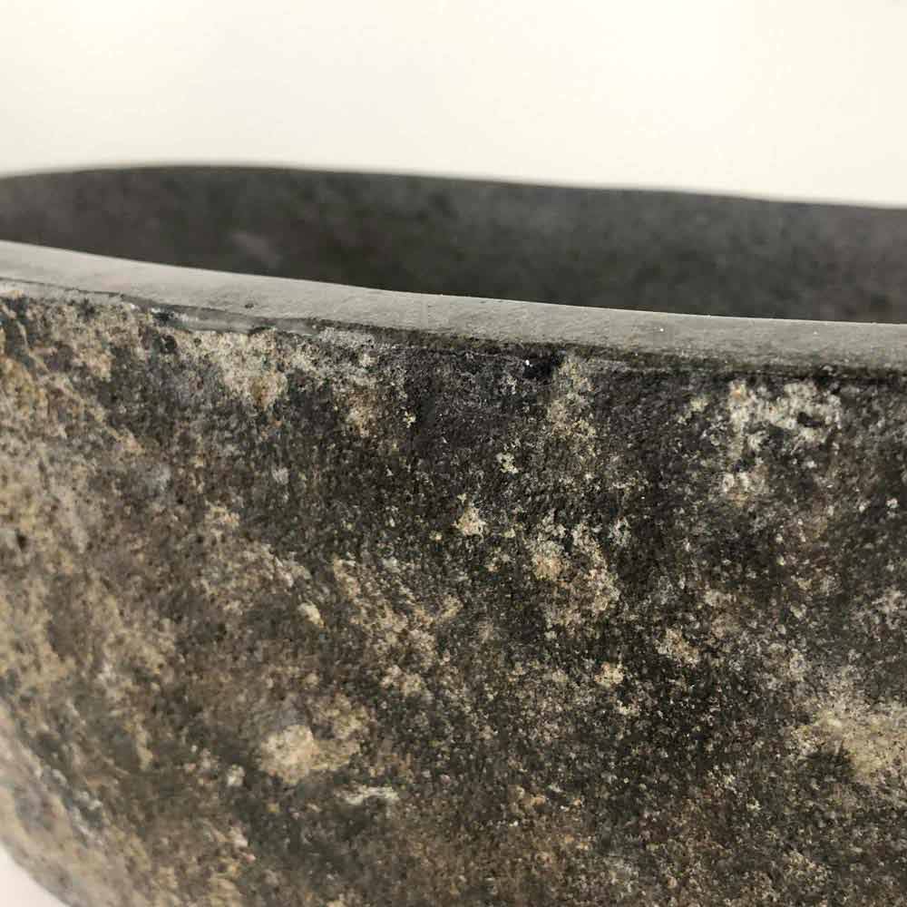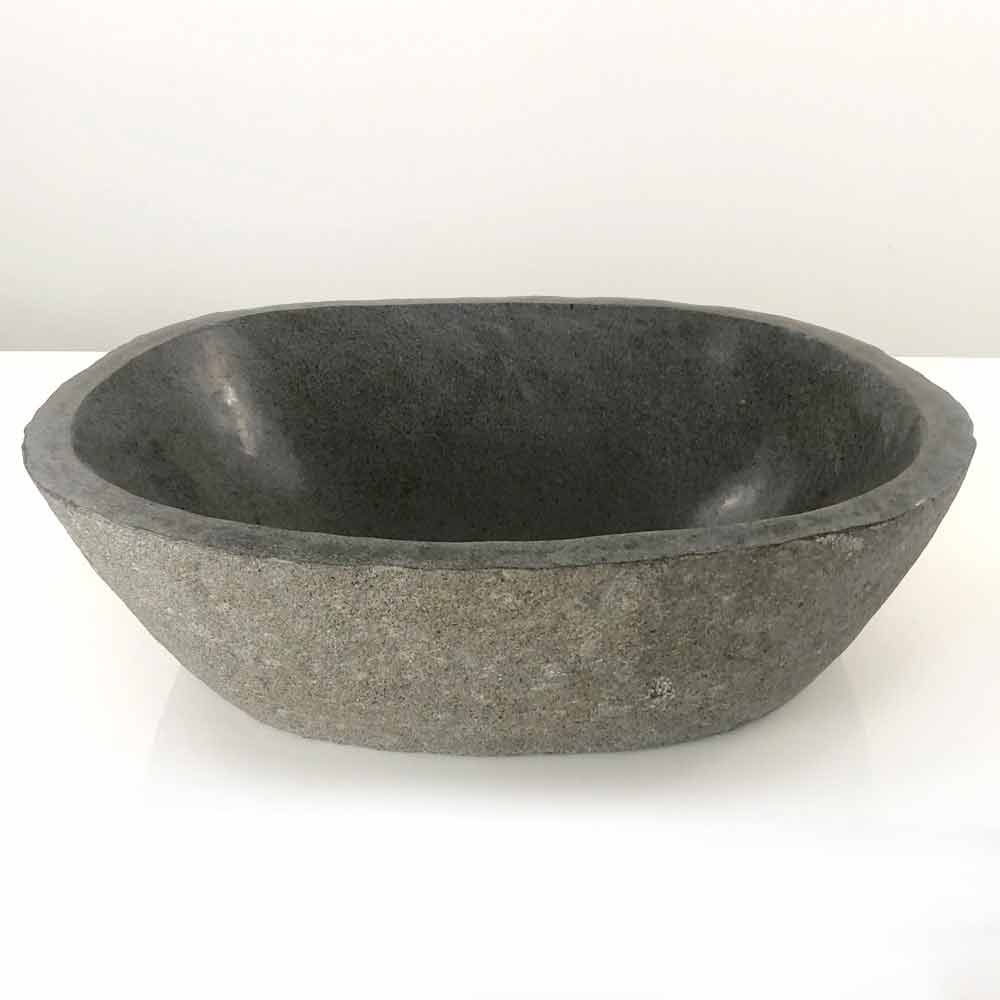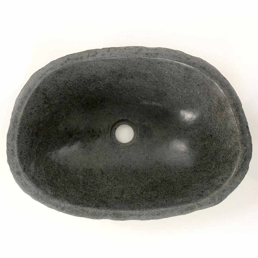 Lavatório de bancada modelo Akta em pedra de rio natural, com formato oval.
