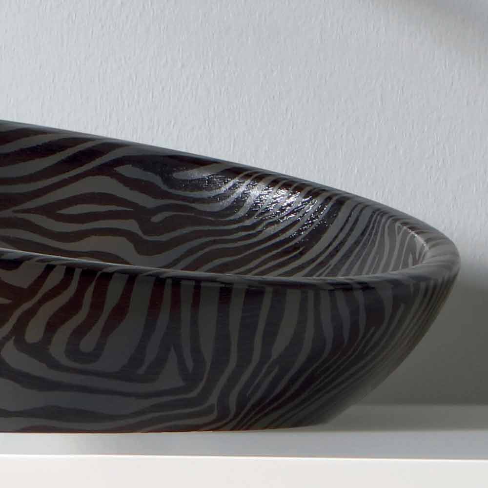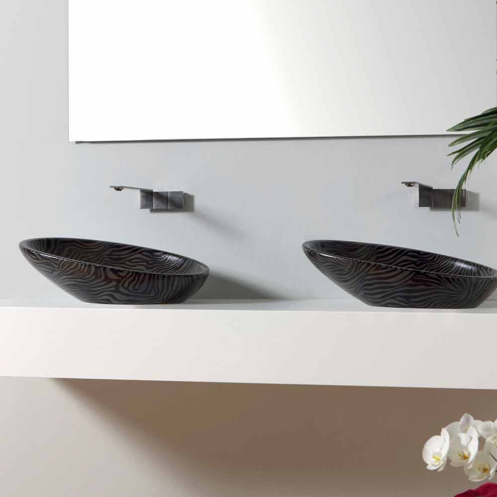 Glossy é o lavatório de bancada fabricado na Itália por mestres artesãos em cerâmica com acabamento zebra prateado.