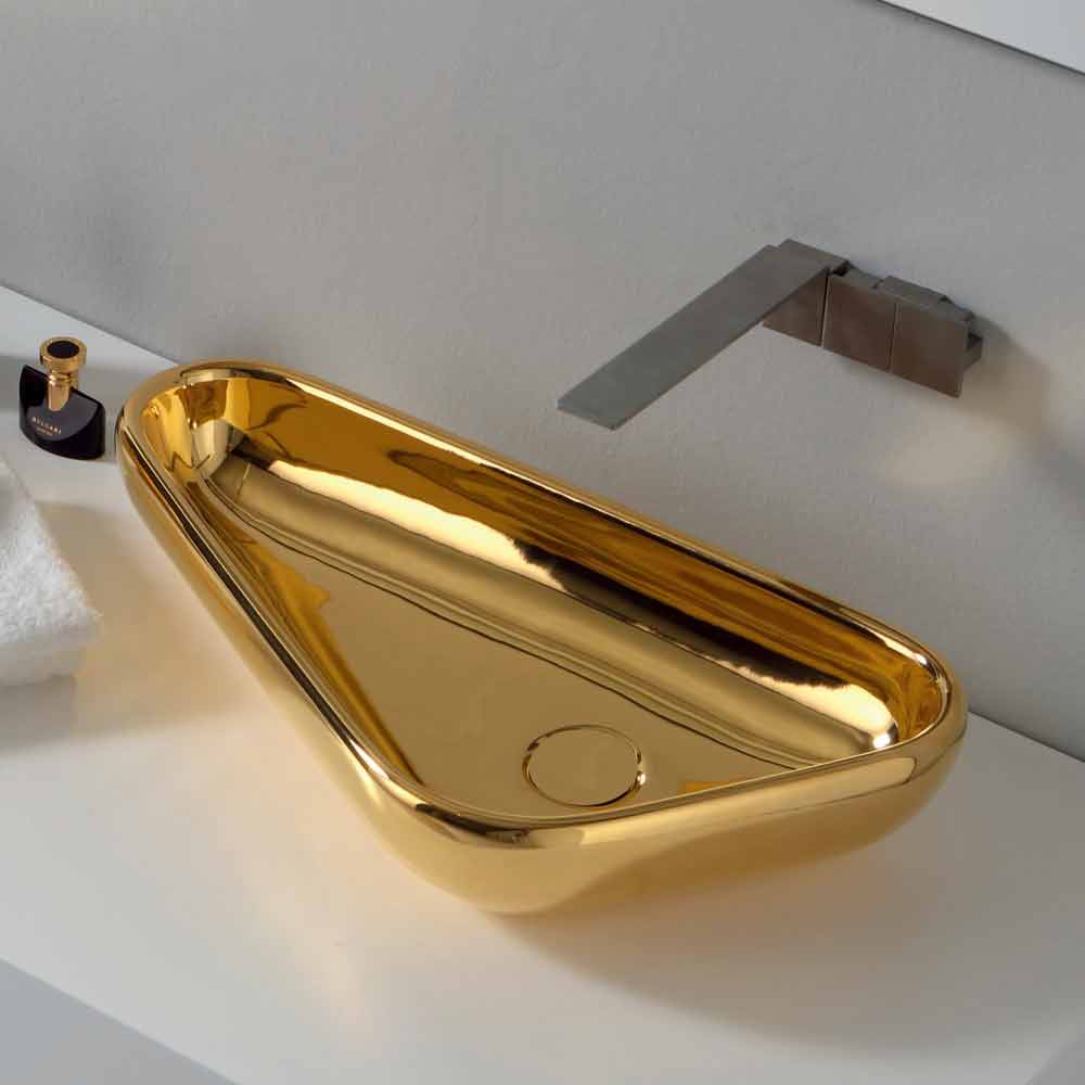 Lavatório de bancada de cerâmica de ouro moderno Sofia feito na Itália