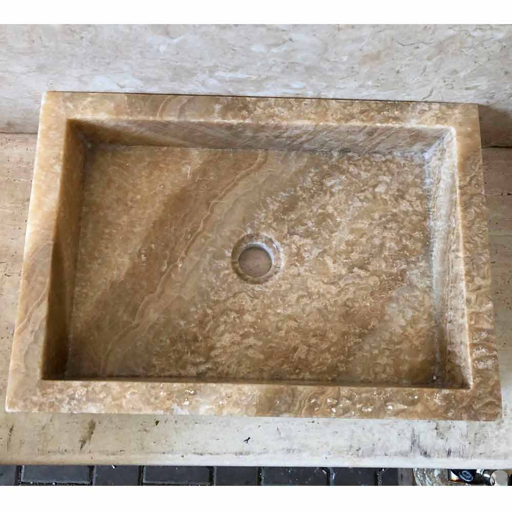 Lavatório de bancada moderno feito de pedra ônix Jef, peça única