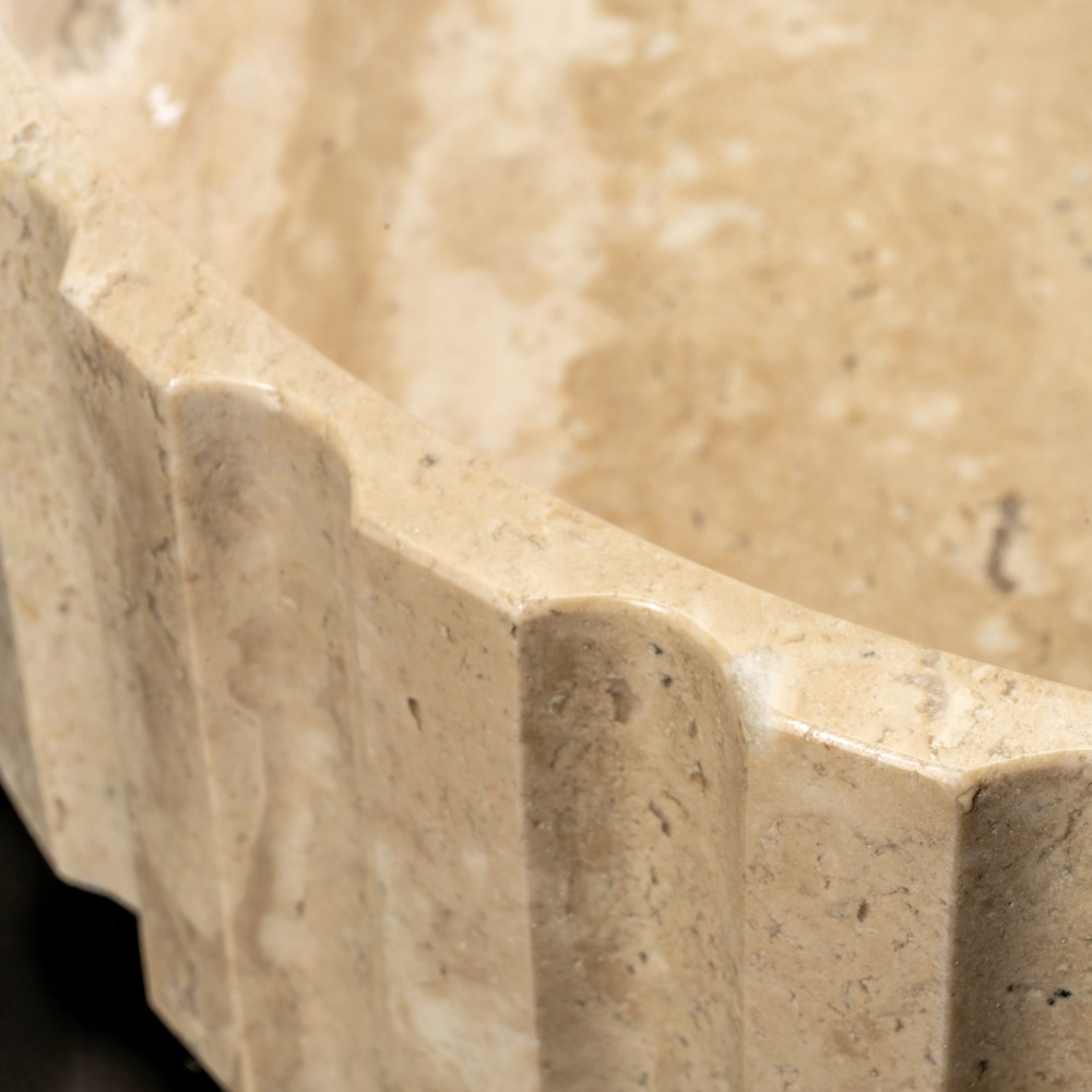 O lavatório de bancada em travertino combina artesanato e uma estética de luxo refinada. Cada peça, esculpida em um único bloco de mármore travertino, é única graças aos veios distintos e às variações de cores que a tornam exclusiva. O desperdício click clack , feito do mesmo mármore, não só completa o design, mas também garante uma funcionalidade impecável. Este lavatório é uma escolha elegante para quem procura um móvel valioso que possa transformar uma casa de banho num espaço de luxo.