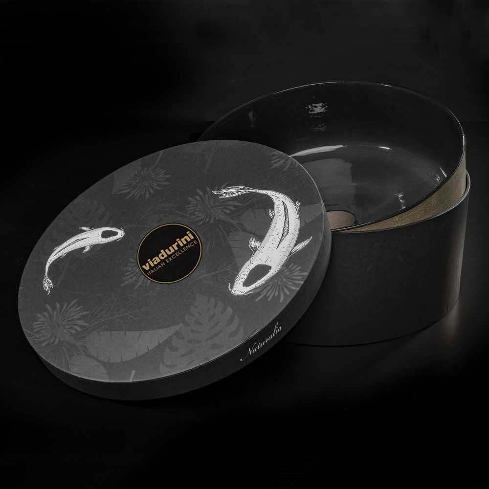 Lavatório de bancada com forma redonda em barro refratário feito artesanalmente na Itália e torneado à mão com terceiro fogo. A sua estética caracteriza-se pela combinação perfeita do exterior natural encerado e impermeabilizado com um estilo mais rústico e o interior brilhante e vitrificado em acabamento preto, a cor por excelência da elegância e requinte ligada a atmosferas misteriosas. Cada elemento do lavatório é feito artesanalmente para dar vida a uma solução de mobiliário exclusiva, de alto valor e de qualidade inigualável.