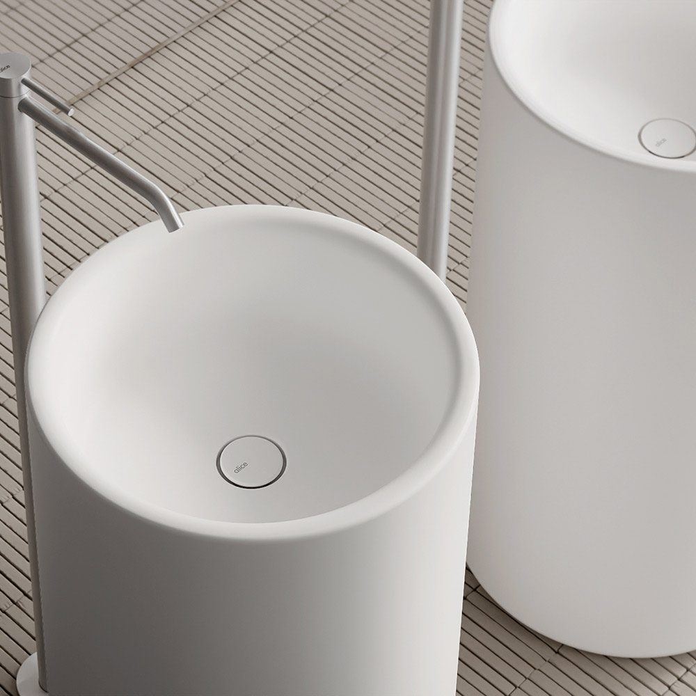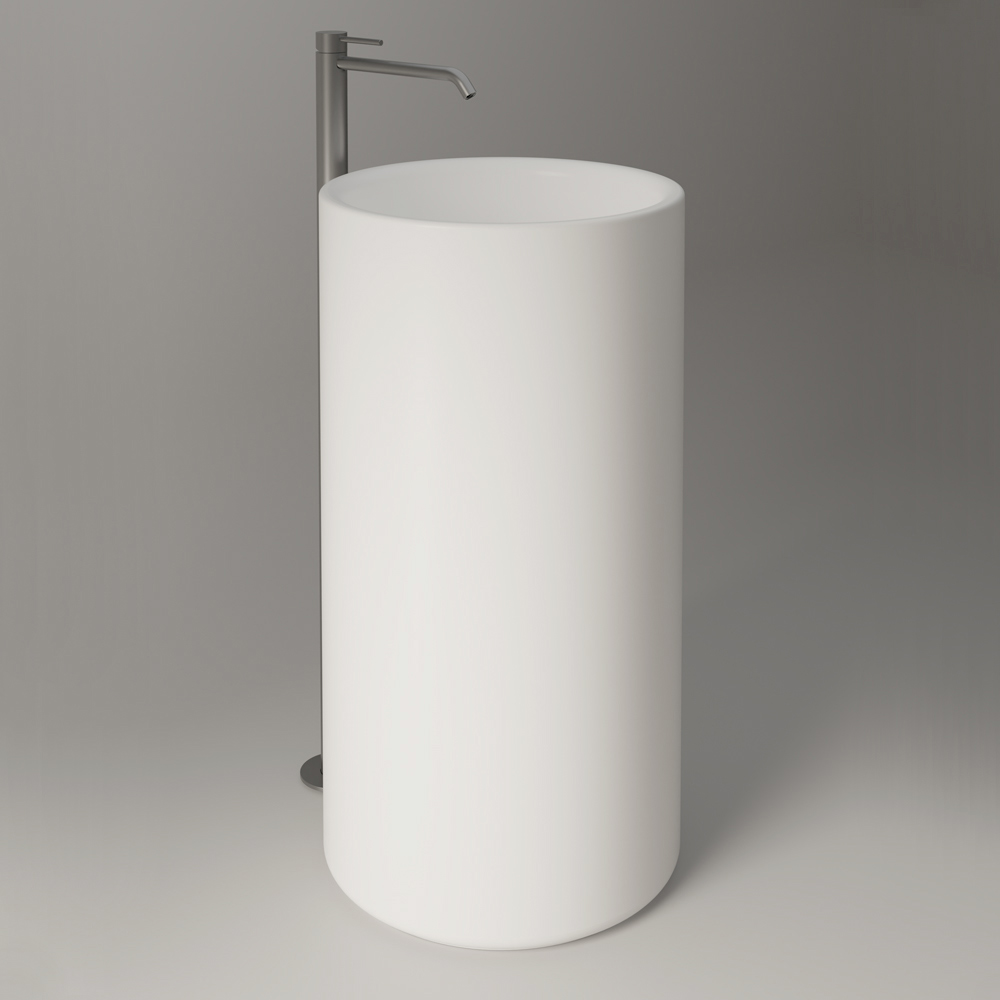 Este lavatório autônomo de cerâmica tem um formato cilíndrico simples e harmonioso , capaz de transformar o banheiro em um espaço sofisticado e de muita personalidade.