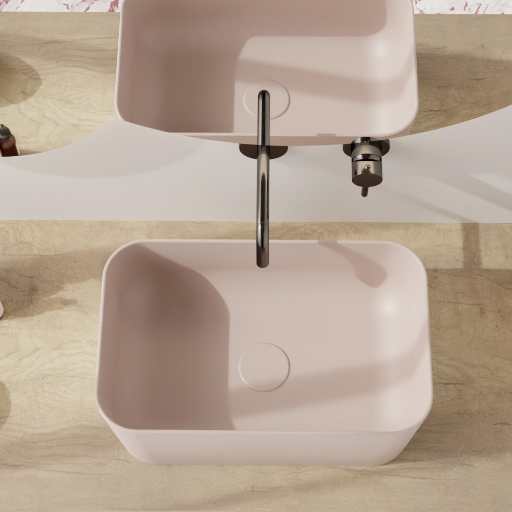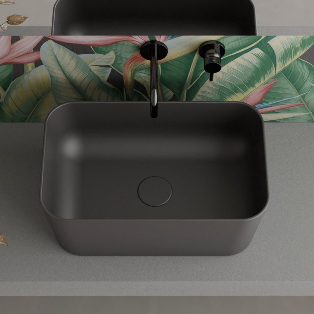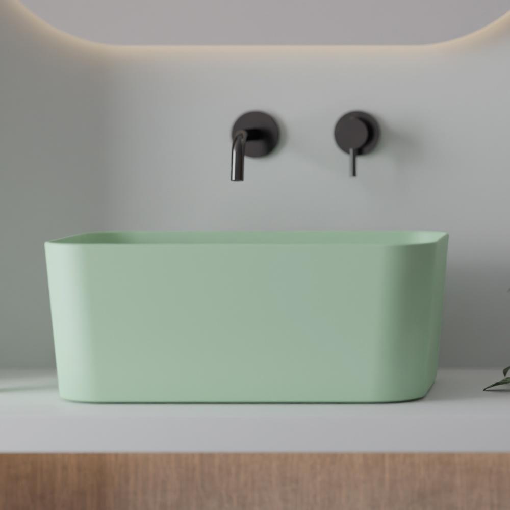 Este lavatório de bancada em cerâmica destaca-se pelo seu design geométrico e clean , formato retangular com cantos arredondados que confere um toque de modernidade a cada banheiro . Os tons disponíveis são requintados e relaxantes, evocando a tranquilidade dos ambientes naturais e minimalistas.