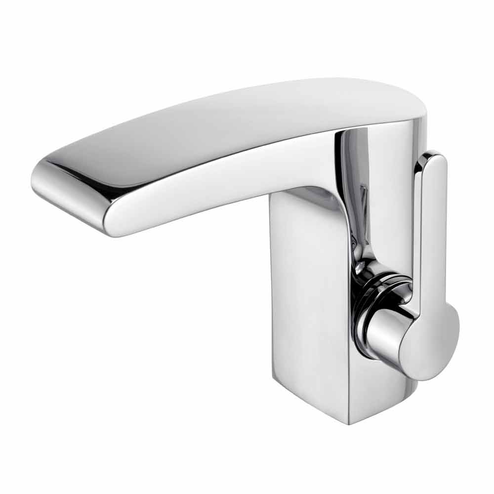 Misturador monocomando moderno para lavatórios em latão com acabamento cromado .