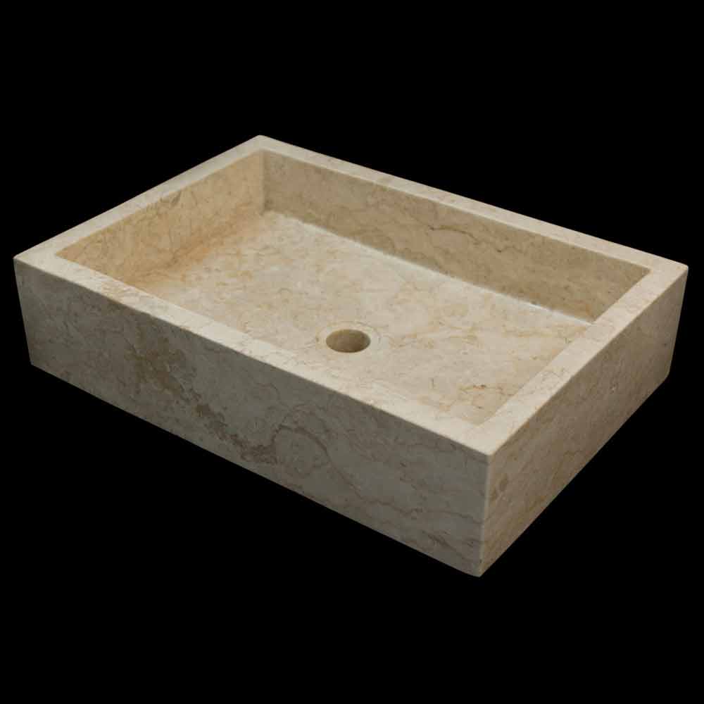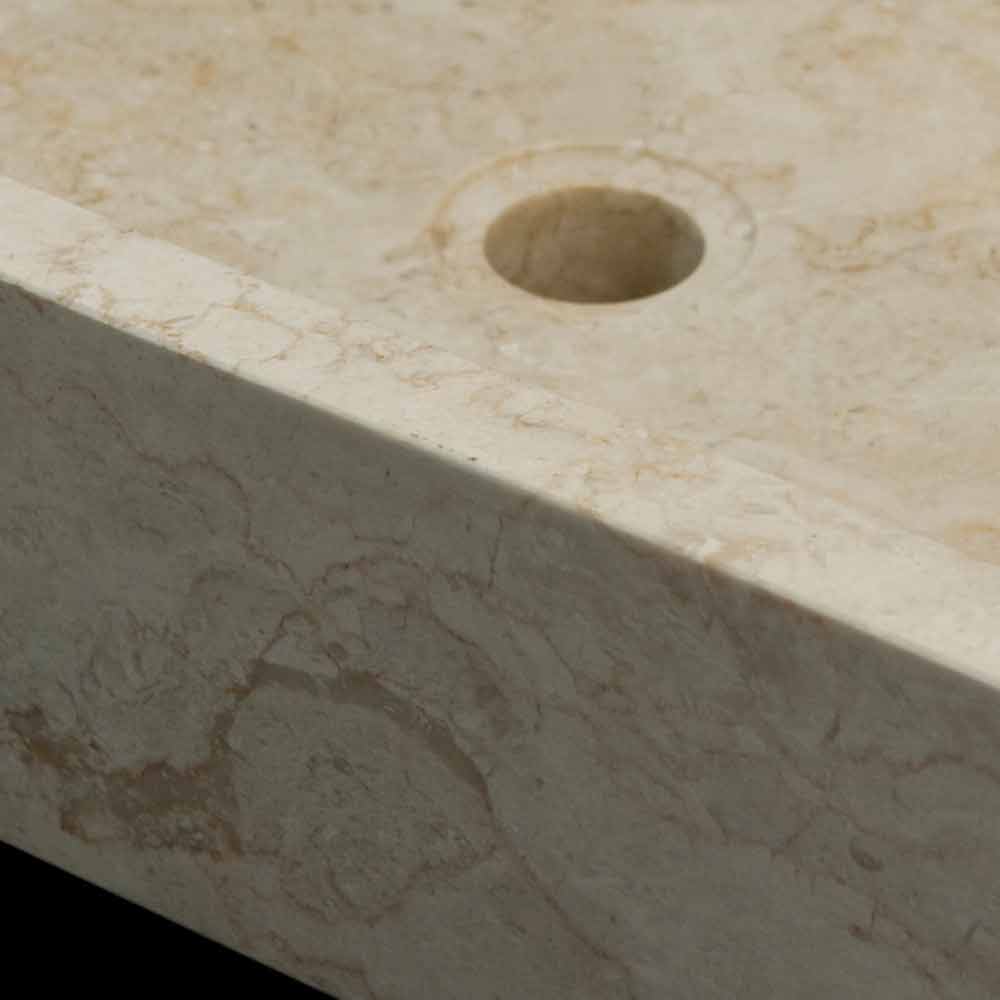 Lavatório de bancada em pedra natural de design moderno.