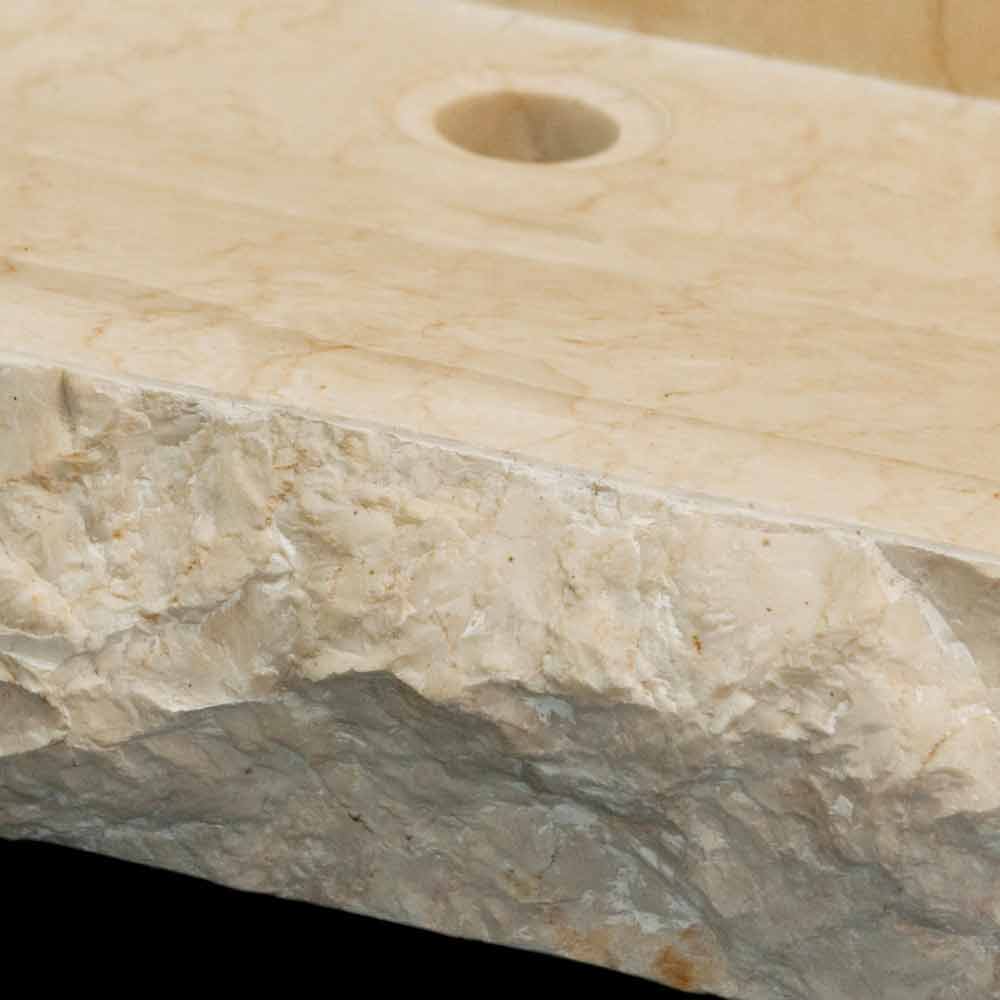Lavatório de bancada em pedra natural artesanal, design moderno. Cor: Branco
