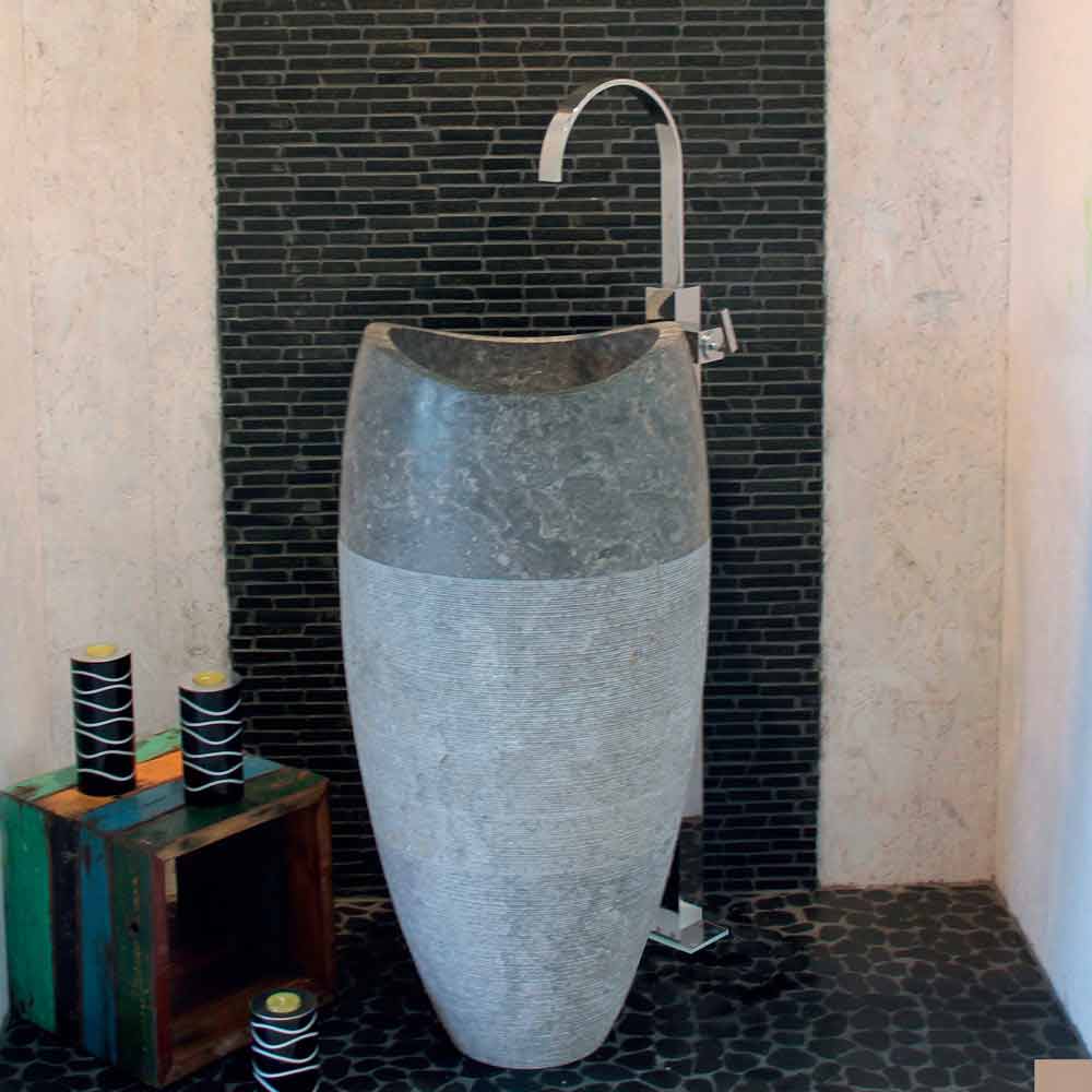 Lavatório de coluna esférica em pedra natural fumada Gili