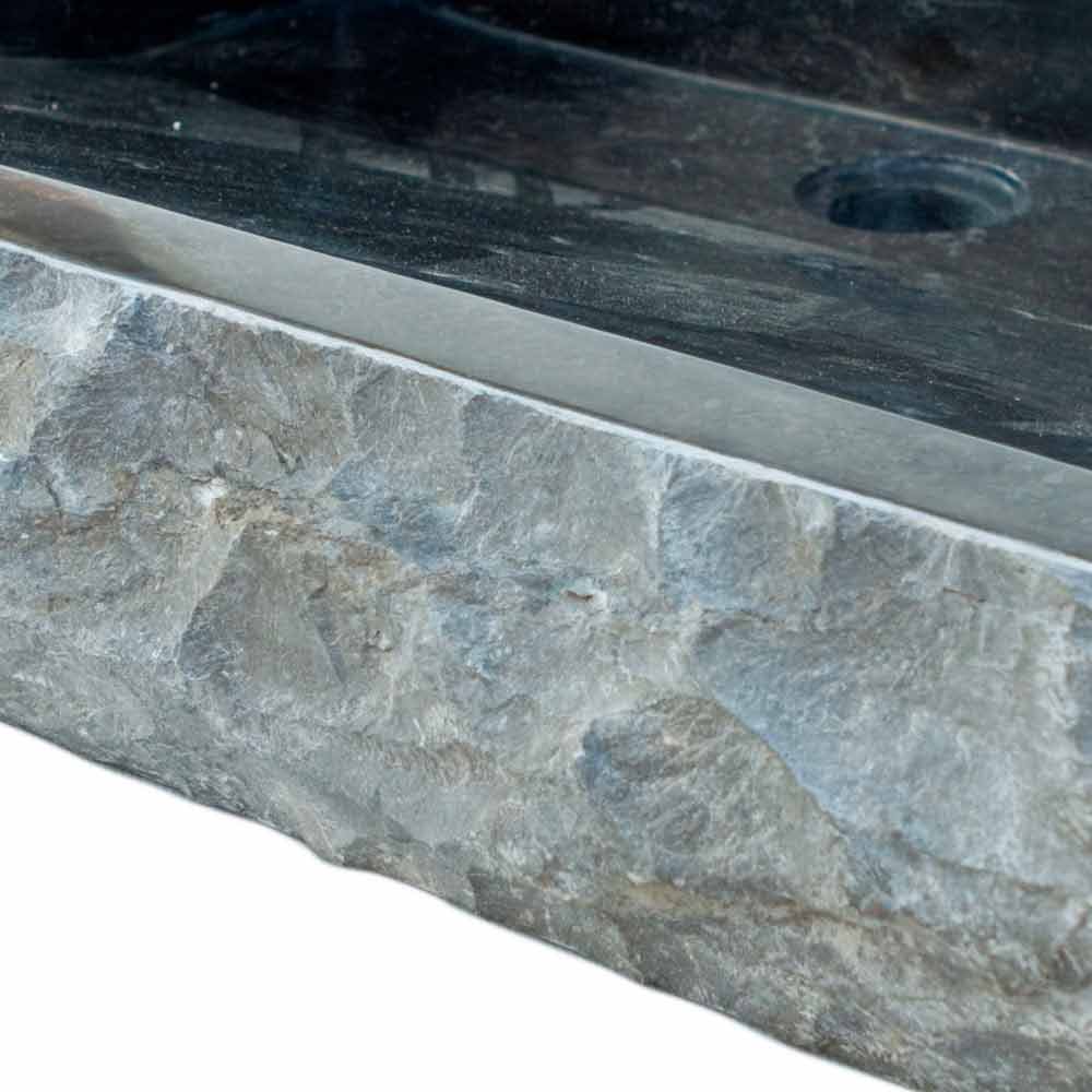 Lavatório de bancada em pedra natural artesanal, design moderno. Cor: Preto