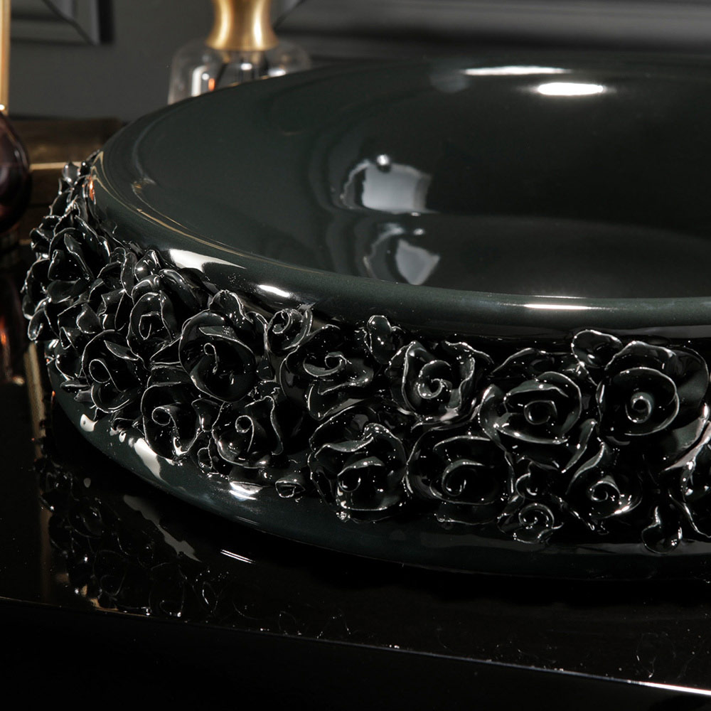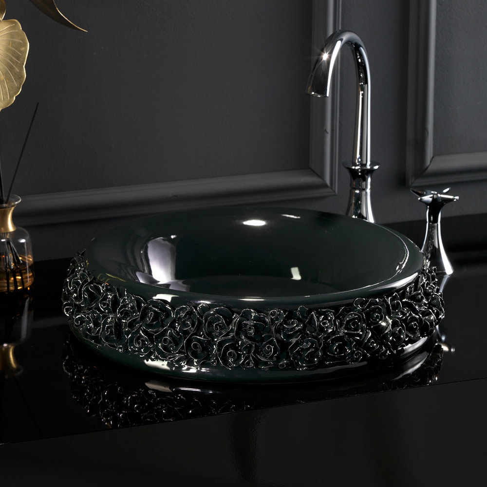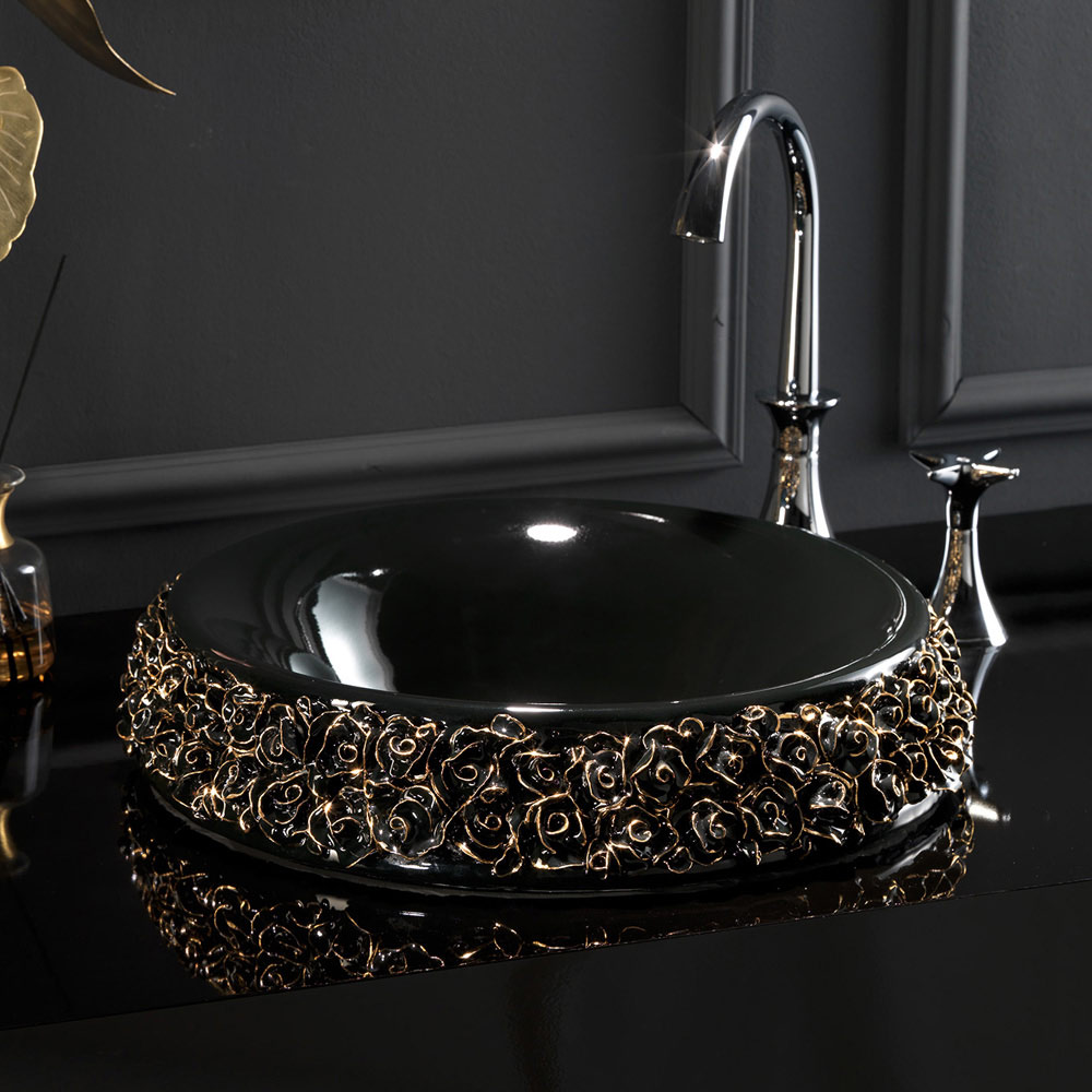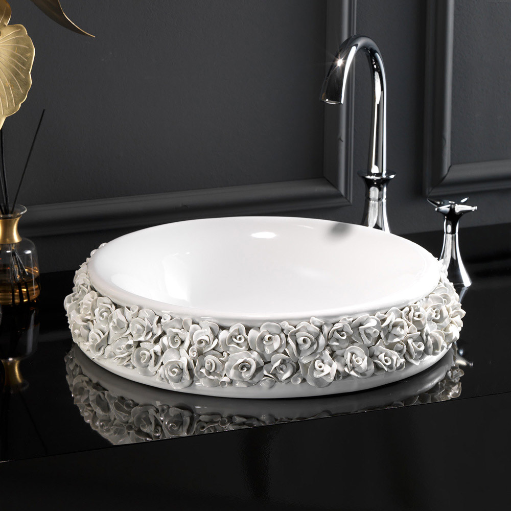 Lavatório de porcelana fundida à mão com pétalas Made in Italy