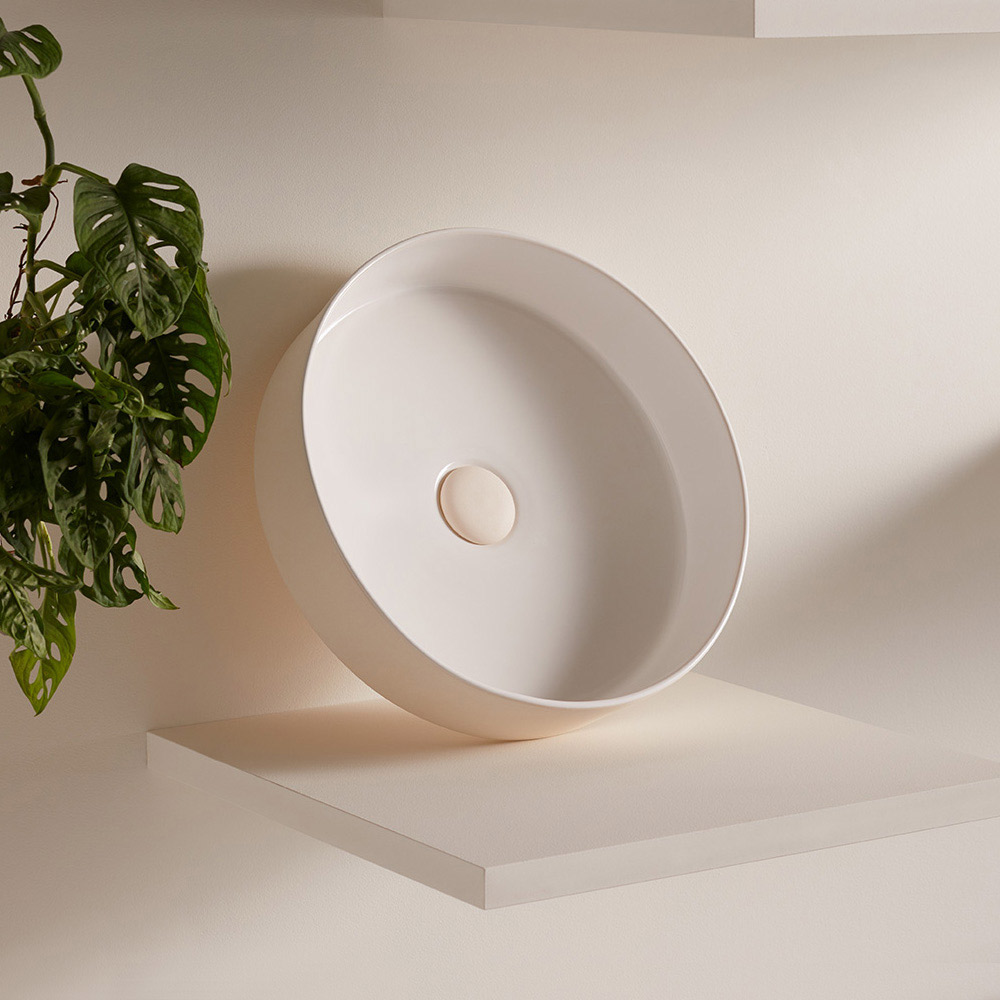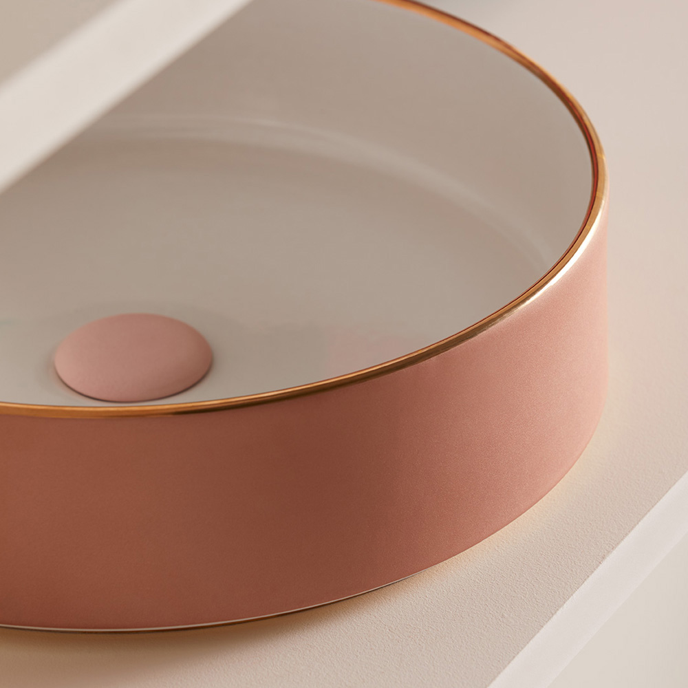 toque vivo e inovador. Acabamentos disponíveis:- interior branco brilhante, superfície lisa, exterior em pó fosco, superfície do material e borda dourada brilhante