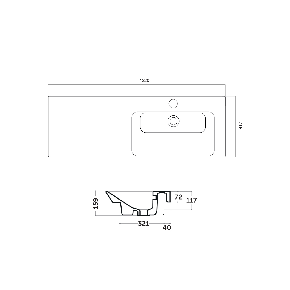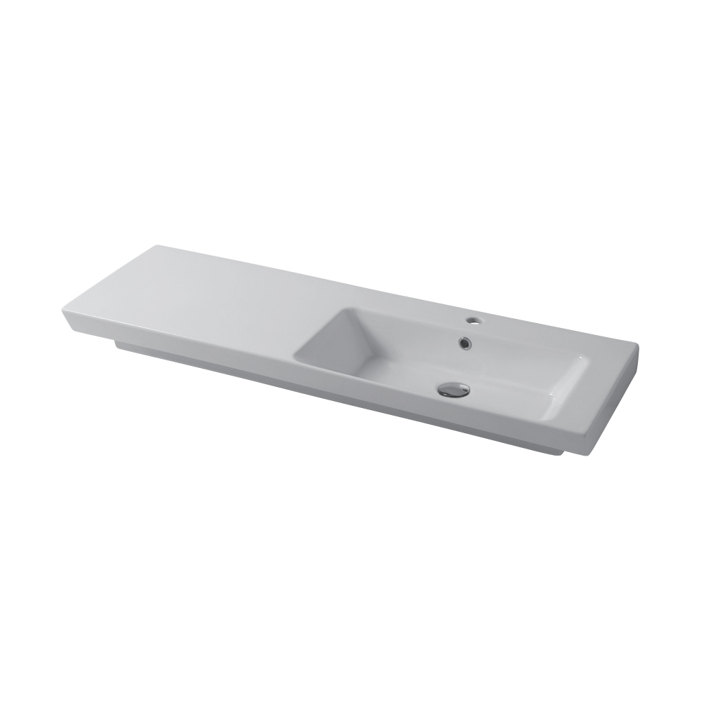 corte frontal inclinado , que confere elegância e impulso. Uma série de lavatórios importantes, também graças às superfícies de apoio laterais e à variedade de dimensões, uma resposta ideal às diferentes necessidades de espaço e funcionalidade.