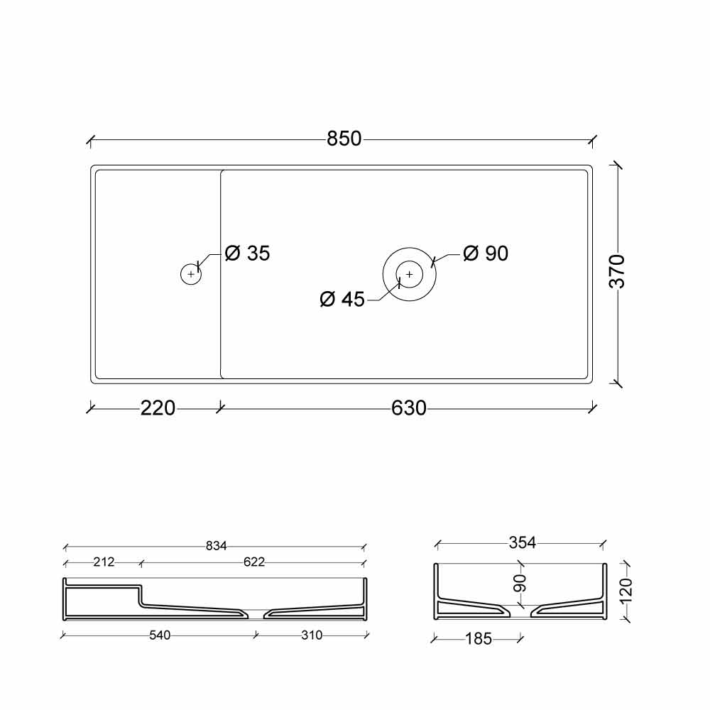 Como opção é possível ter o sifão redondo em latão com acabamento cromado e também é possível ter o lavatório Hide 85x37 com furo ou sem furo para as torneiras, para mais informações não hesite em contactar clienti@viadurni.it .
