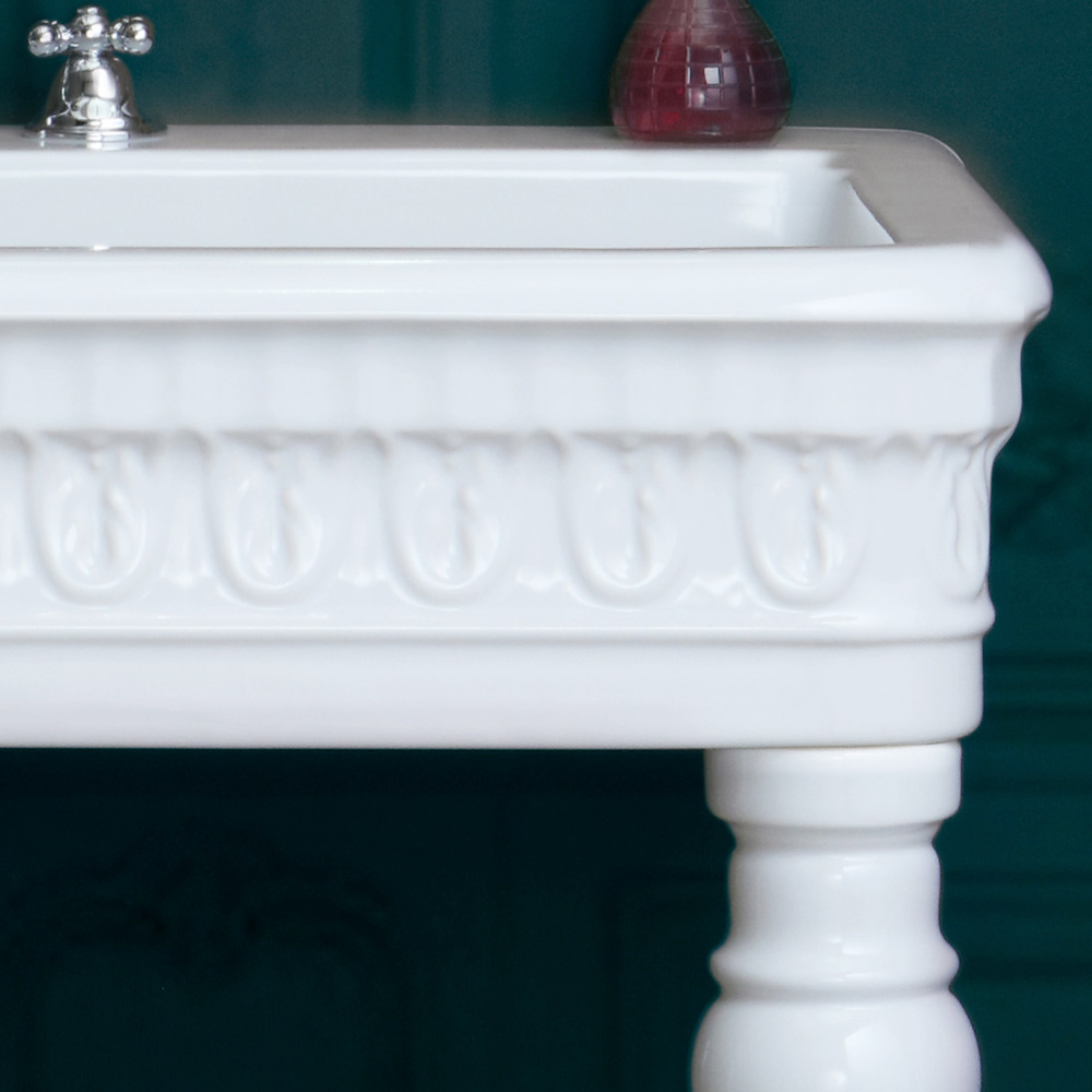 Lavatório de console em cerâmica branca artesanal através de uma produção 100% Made in Italy . Majestoso e imponente, este acessório de mobiliário de design clássico e requintado nasce da vontade de dar vida a uma solução capaz de criar uma harmonia perfeita tanto em espaços clássicos como em ambientes com mobiliário moderno dentro dos quais constrói um contraste invulgar para um ambiente criativo e original efeito .