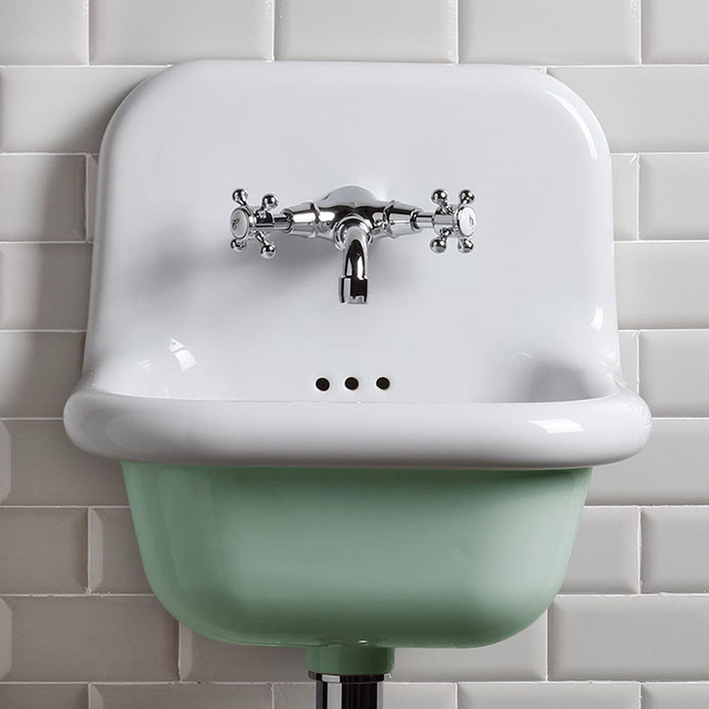 Lavatório autoportante moderno em cerâmica branca e colorida de 42 cm.