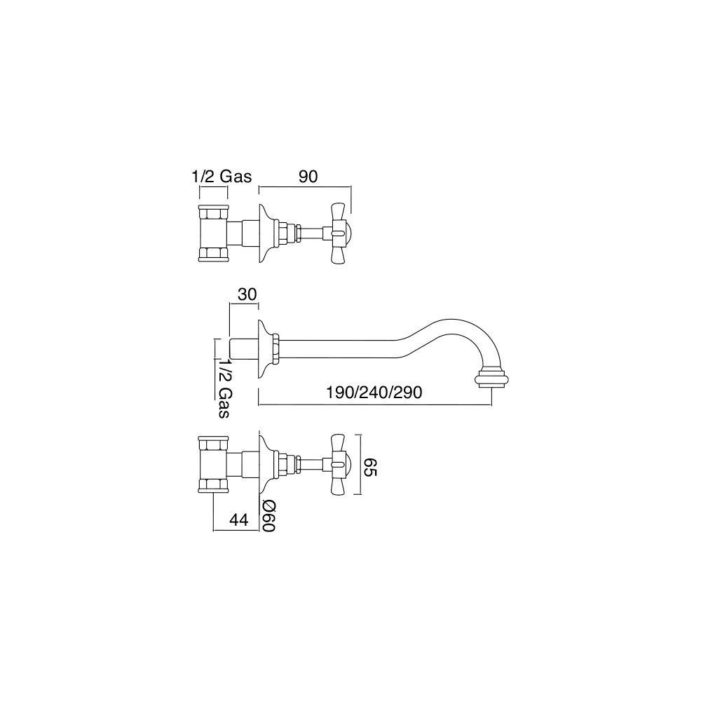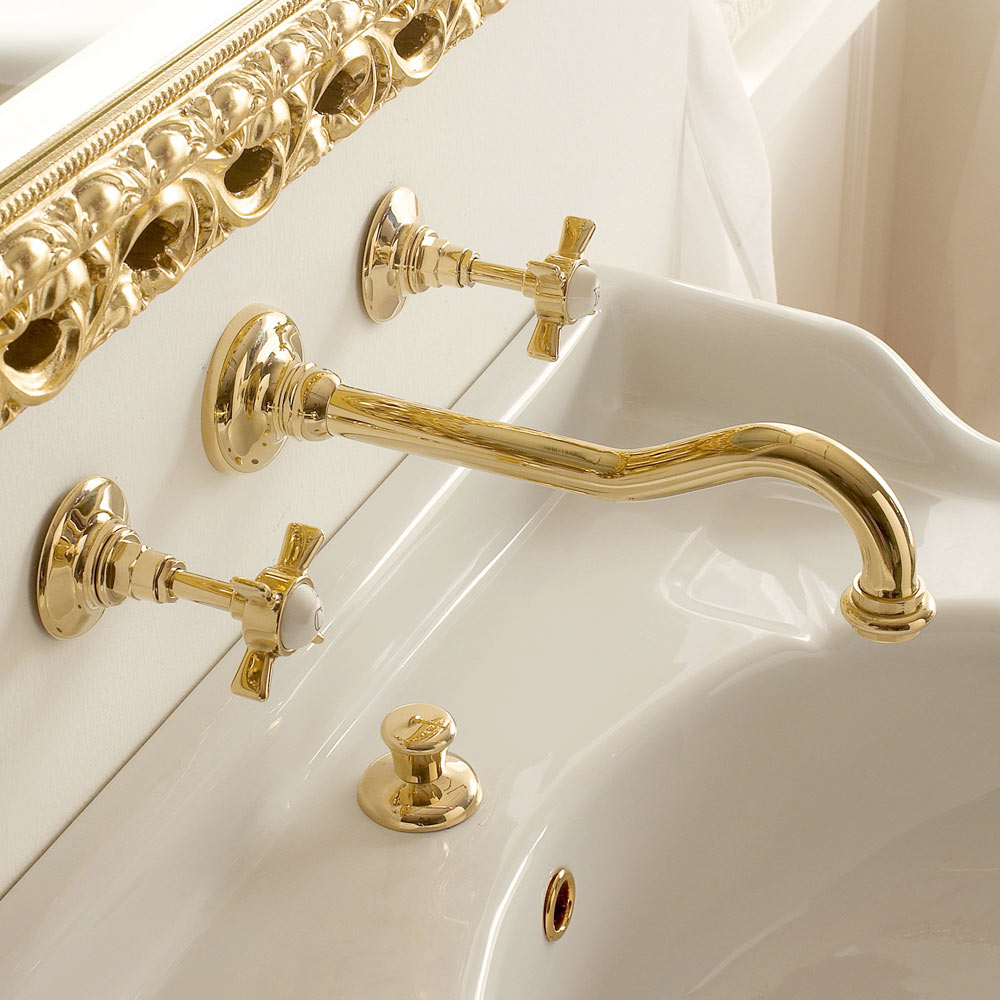 Torneira de parede para lavatório ou pia em latão Katerina, fabricada em Itália.