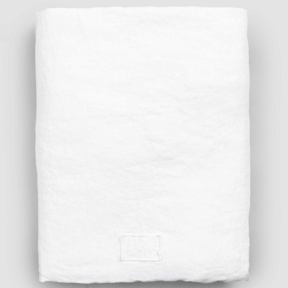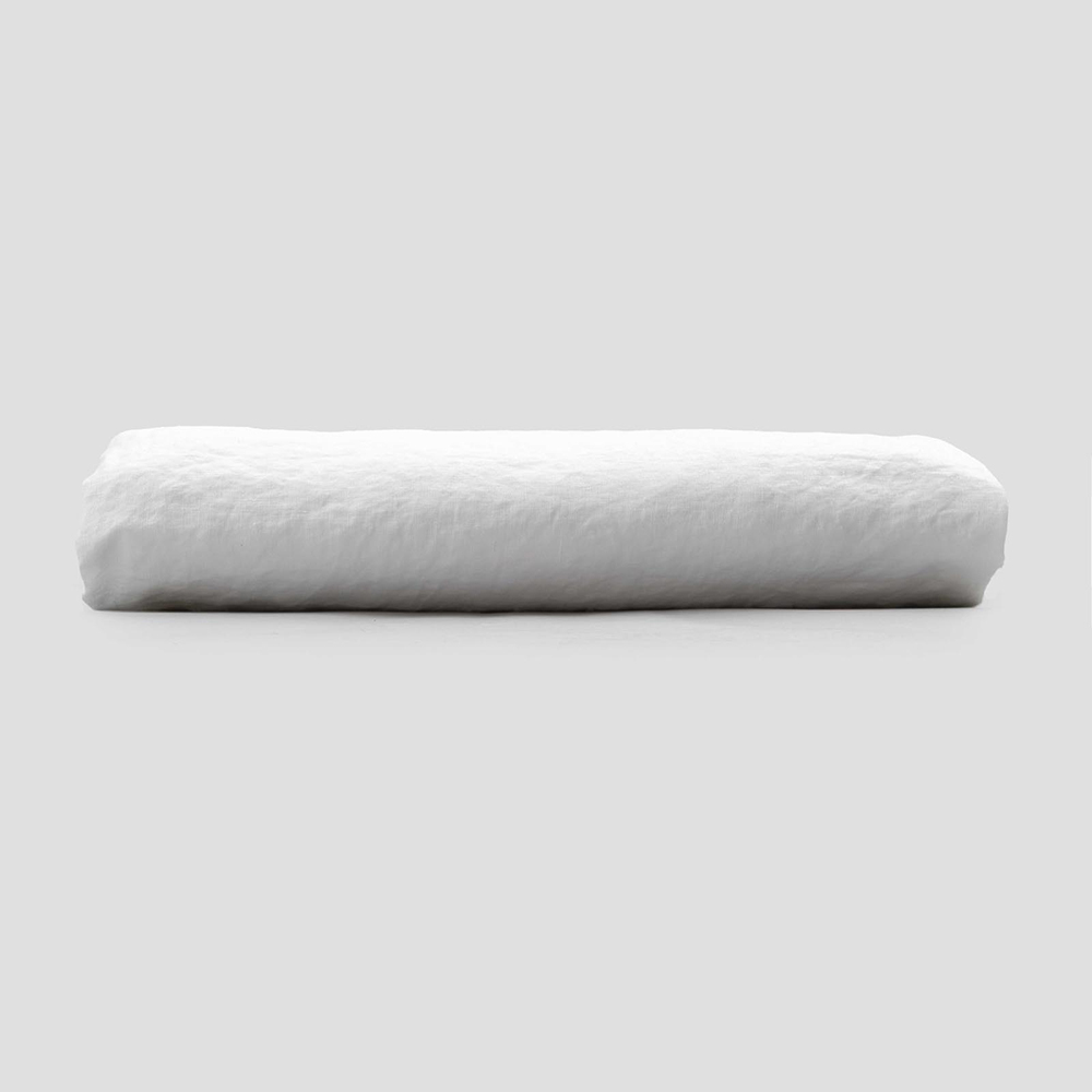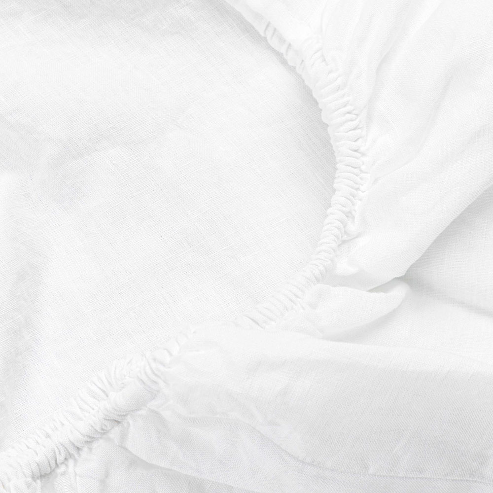 Lençol ajustável para cama de casal em linho branco puro, design de luxo feito na Itália.