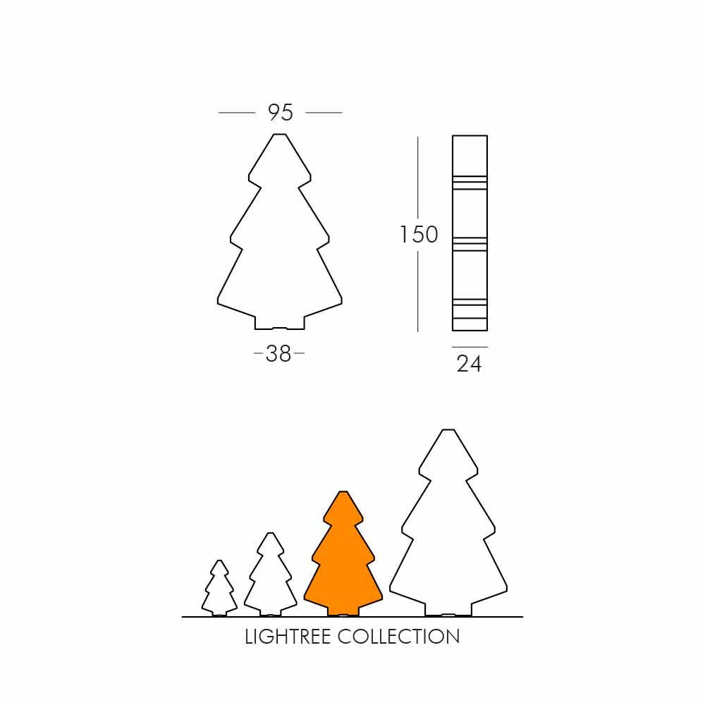 Lightree é um candeeiro decorativo em forma de pinho para ambientes exteriores perfeito para adicionar estilo e animar o espírito natalício do seu ambiente. Com um forte impacto visual, este candeeiro em forma de árvore de Natal iluminará uniformemente noites organizadas ou espaços exteriores criados para a ocasião com as suas luzes suaves, conseguindo recriar um ambiente acolhedor.