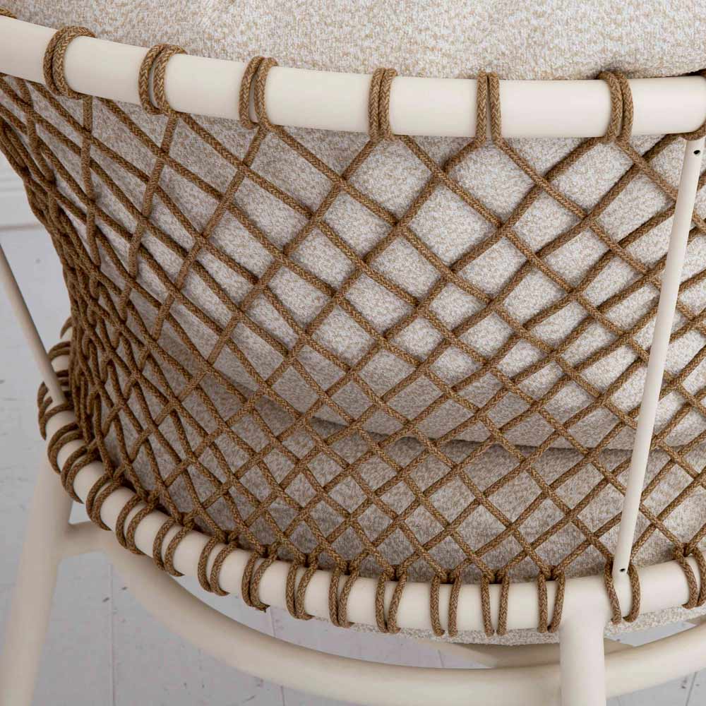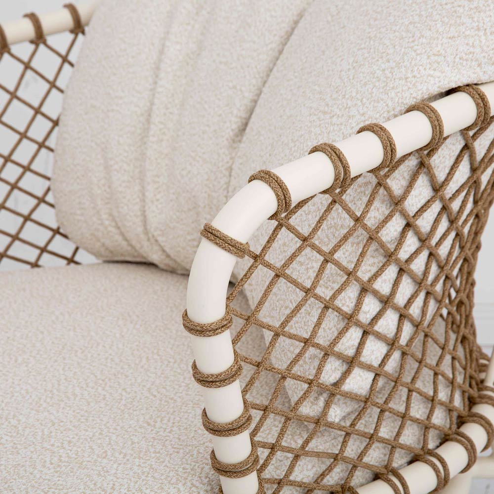 O design tecido com corda sintética cria um efeito visual fascinante e cativante, perfeito para adicionar um toque de estilo ao seu jardim ou terraço. As almofadas macias, acolchoadas e revestidas em tecido , garantem um relaxamento total e um conforto superior, ideal para os seus momentos de pausa ou para receber os seus convidados em grande estilo.